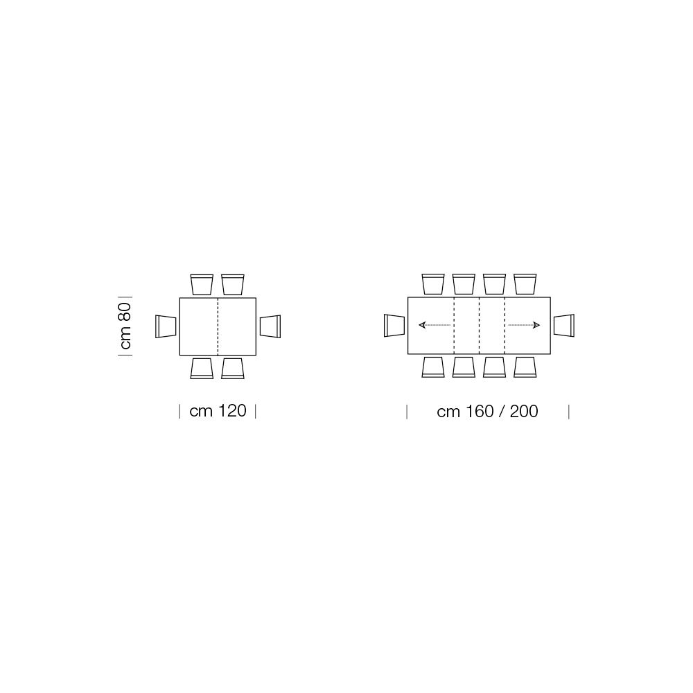 - Dł. 120 (280) x gł. 80 x wys. 77 cm 14-miejscowe siedzisko z możliwością przedłużenia czterema wewnętrznymi przedłużeniami o długości 40 cm;