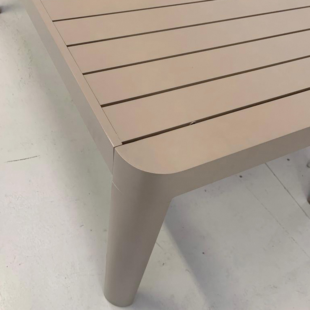 Ten rozkładany stół aluminiowy jest przykładem eleganckiego i funkcjonalnego projektu, idealnego do użytku na zewnątrz. Jego wykończenie i czyste linie wywołują poczucie nowoczesności i przestronności, oferując zachęcającą powierzchnię na każdą okazję, od rodzinnych posiłków po kolacje z przyjaciółmi. Aluminiowa konstrukcja gwarantuje nie tylko wizualną lekkość , ale jest także synonimem solidności i odporności .