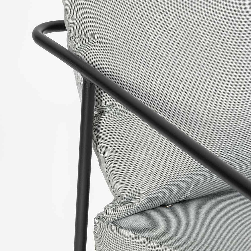 konstrukcji stalowej poddanej fosforanowaniu i pomalowanej do użytku na zewnątrz malowane proszkowo (poliester), a poduszki siedziska i oparcia wykonane z