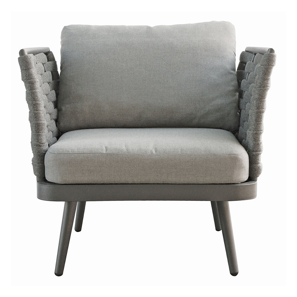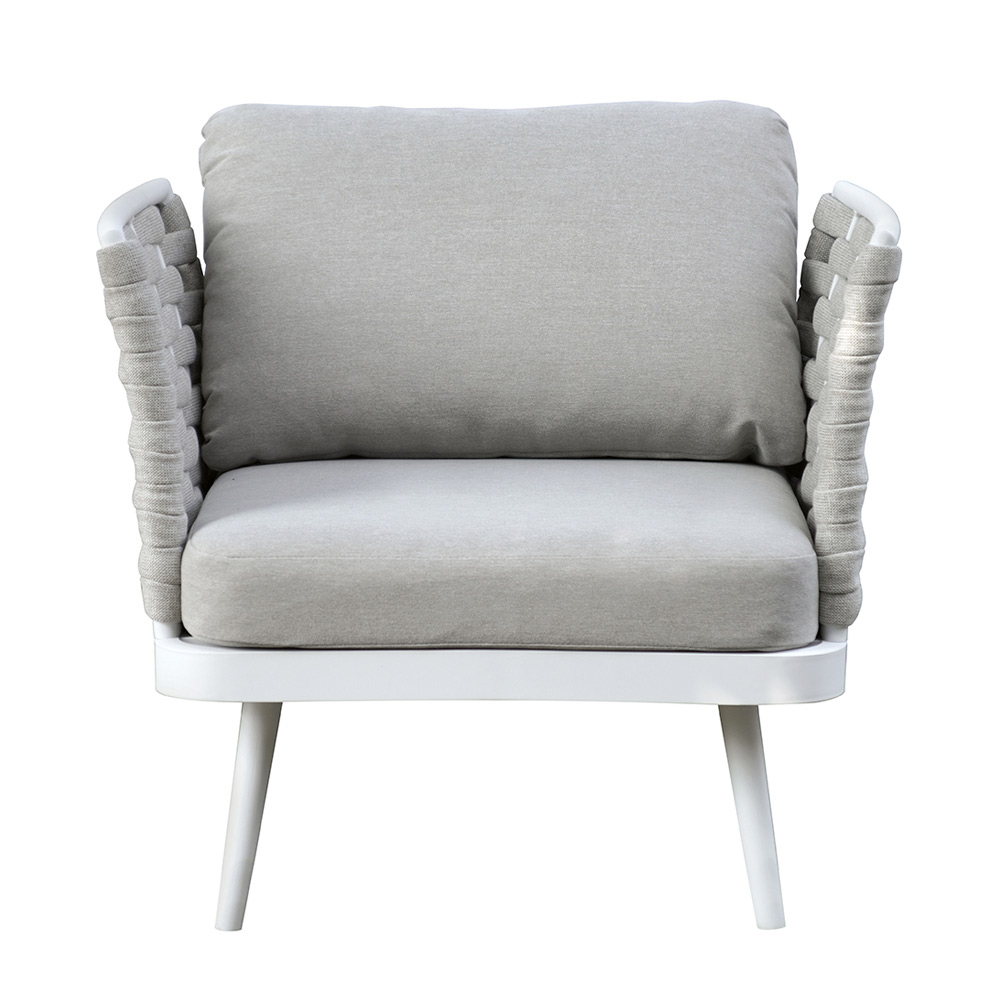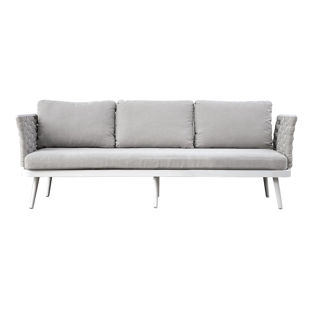 Ten salon ogrodowy jest idealnym rozwiązaniem dla tych, którzy szukają idealnej równowagi między elegancją i komfortem. Składający się z foteli i sofy z tapicerowanymi poduszkami oraz solidnego stolika kawowego, zestaw ten jest idealnym dodatkiem, aby cieszyć się relaksującymi chwilami na świeżym powietrzu. Nowoczesny design i czyste linie idealnie pasują do każdego otoczenia zewnętrznego, od przestronnych patio po przytulne ogrody.