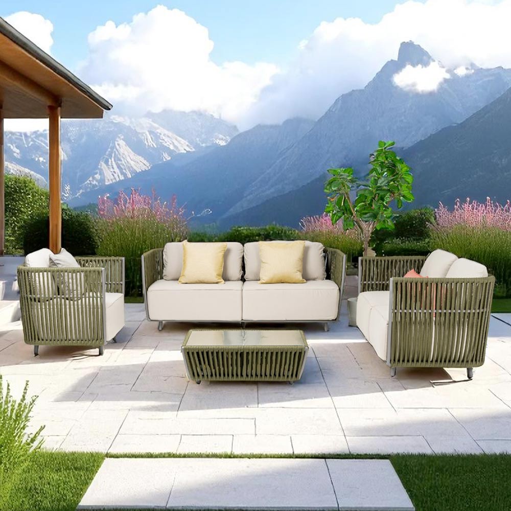Dzięki zastosowaniu specjalnych wysokiej jakości materiałów, ten zewnętrzny salon gwarantuje doskonałą odporność na warunki atmosferyczne, brud, kurz i plamy.