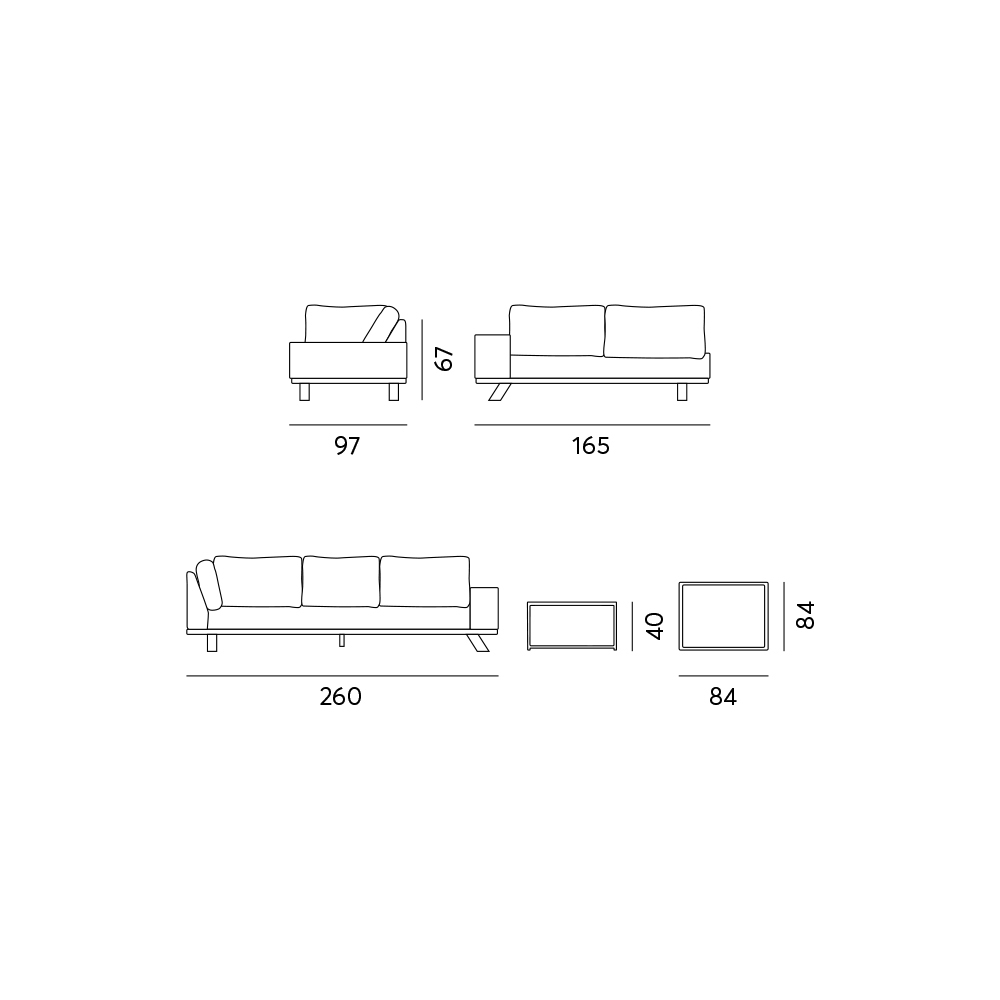 - sofa trzyosobowa: szer. 260 x gł. 97 x wys. 67 cm;