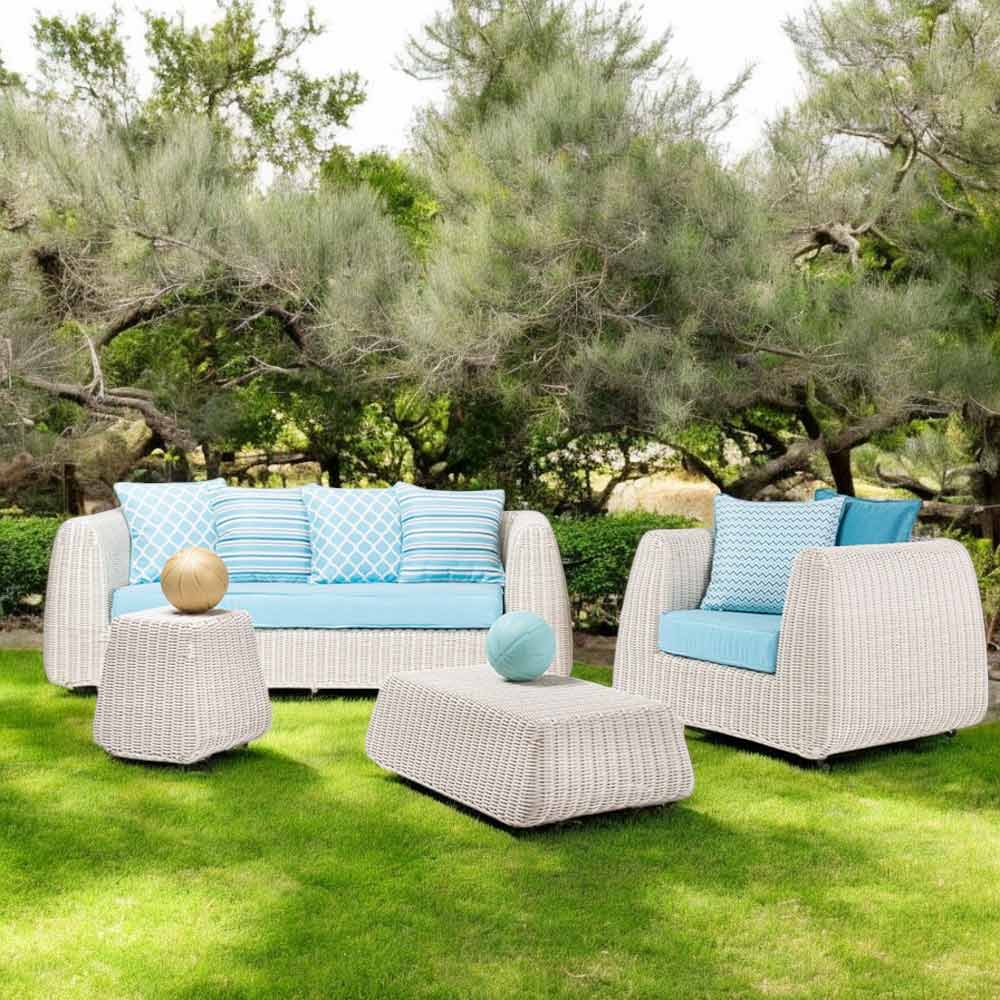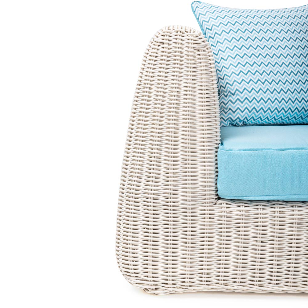 Wyrafinowany design, bardzo wysoka jakość materiałów i jego faliste kształty sprawiają, że idealnie nadaje się do umeblowania wnętrz i na zewnątrz. Dzięki zastosowaniu specjalnych wysokiej jakości materiałów, ten zewnętrzny salon nie obawia się złej pogody i zmian temperatury dzięki certyfikacji tkanego włókna.