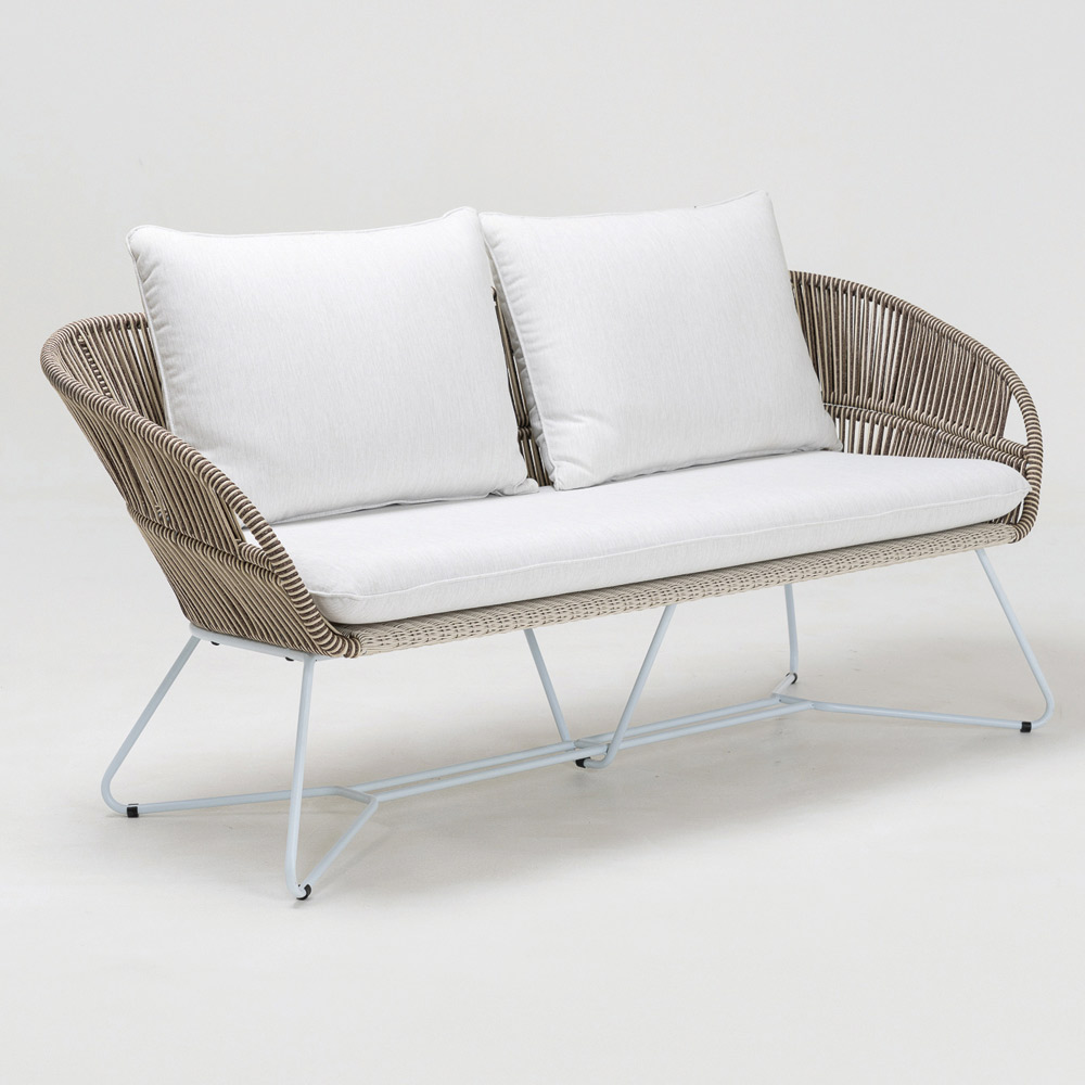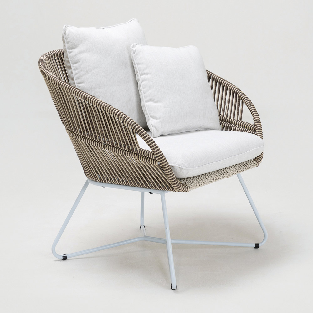 splotu Olefin/PP ROPE z dwukolorowym wykończeniem w kolorze perłowej bieli i cappuccino oraz poduszkę na siedzisko i oparcie z