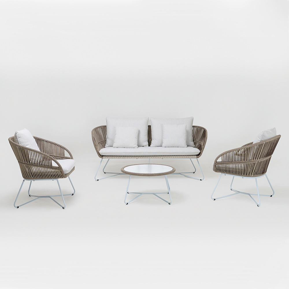 Zestaw wypoczynkowy do ogrodu z aluminium, splotem Olefin/PP ROPE i poduszkami