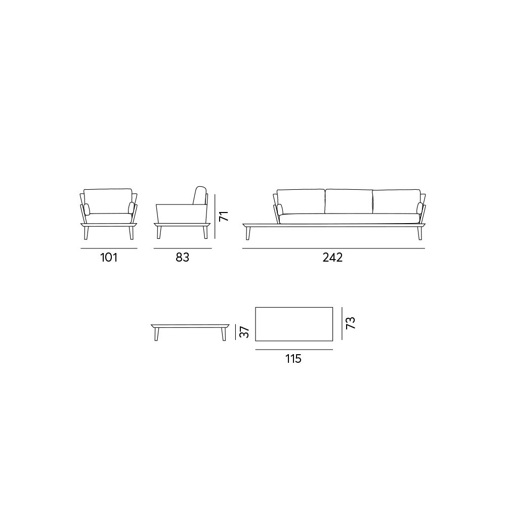 - sofa trzyosobowa: szer. 242 x gł. 83 x wys. 71 cm;