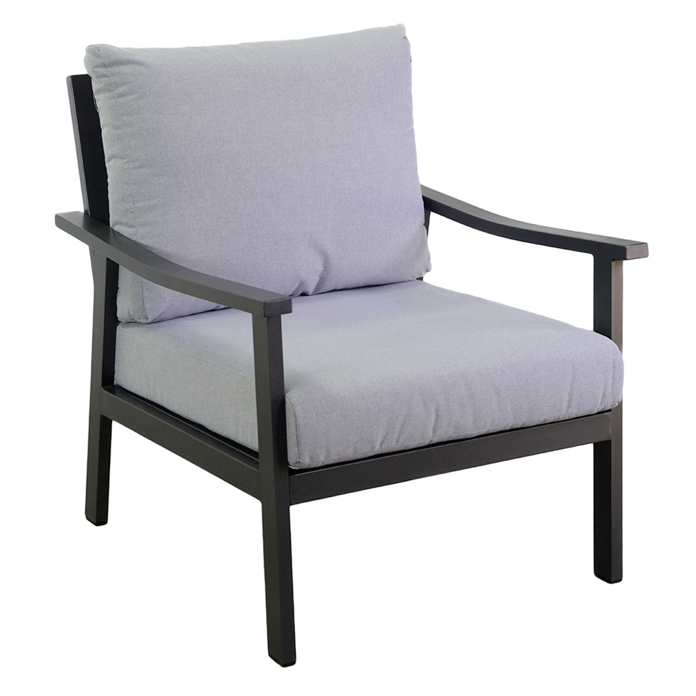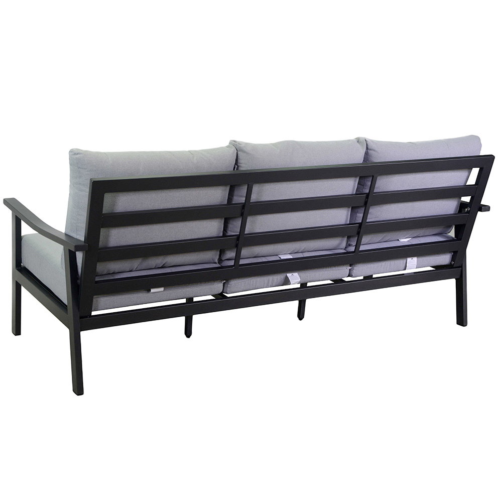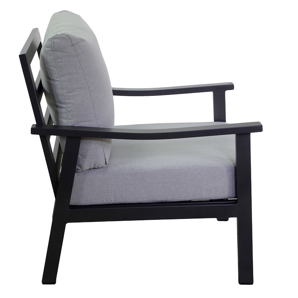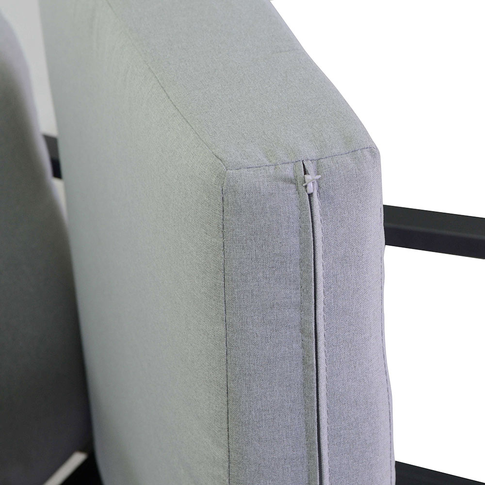 Odkryj ponadczasową elegancję i komfort dzięki naszemu antracytowemu aluminiowemu salonowi. Każdy element został zaprojektowany tak, aby zapewnić absolutny relaks dzięki ultramiękkim poduszkom z jasnoszarej tkaniny, które zachęcają do chwil dobrego samopoczucia. Solidna aluminiowa rama zapewnia trwałość i stabilność, idealną do codziennego użytku na zewnątrz.