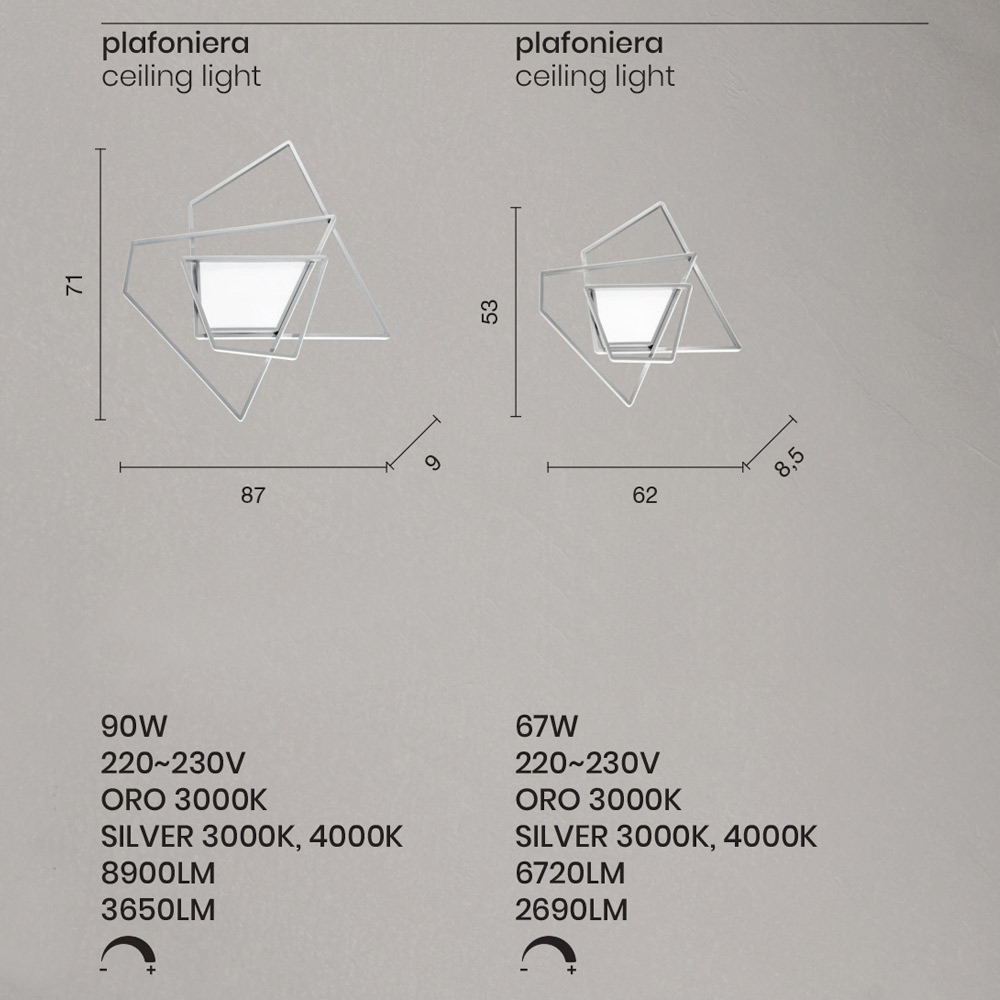Dostępne wykończenia: Dostępne rozmiary:- dł. 87 x gł. 9 x wys. 71 cm (LED 90W 220-230V 3000K 8900LM);