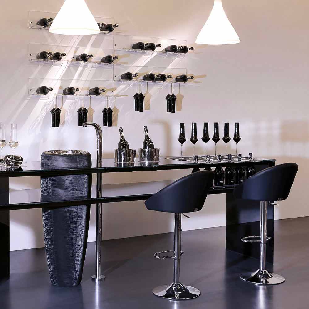 Uchwyt ścienny na 6 butelek z przezroczystego pleksiglasu Made in Italy.