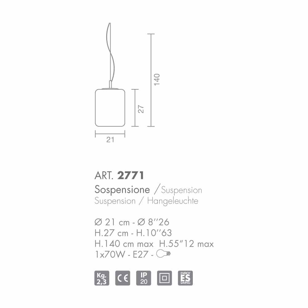 Selene Domino lampa wisząca z dmuchanego szkła śred 21 x wys. 27/140 cm