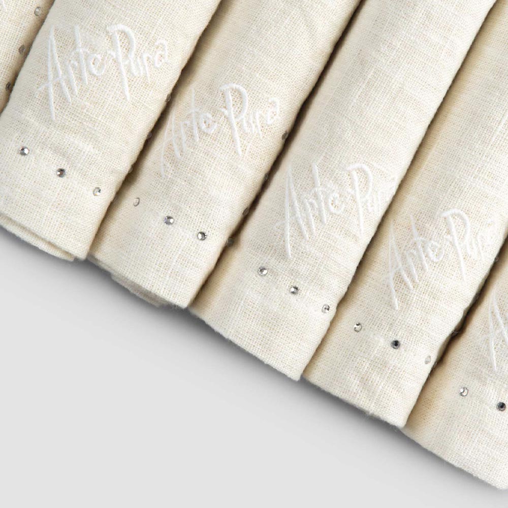Dostępne są również lniane obrączki na serwetki z tej samej kolekcji, zapewniające całościowy i elegancki wygląd. Jeśli chcesz, nie wahaj się poprosić o wycenę, wypełniając odpowiedni formularz.