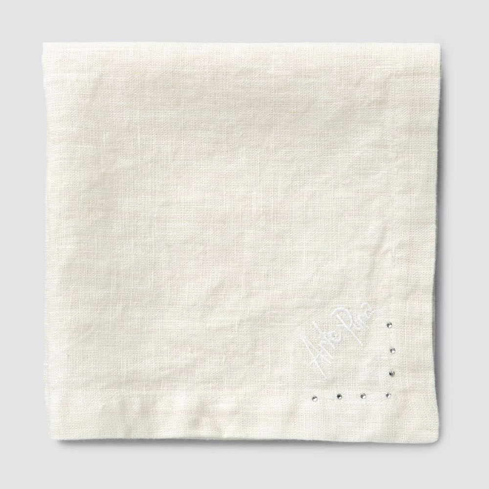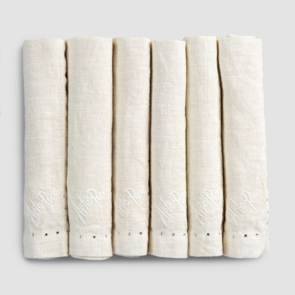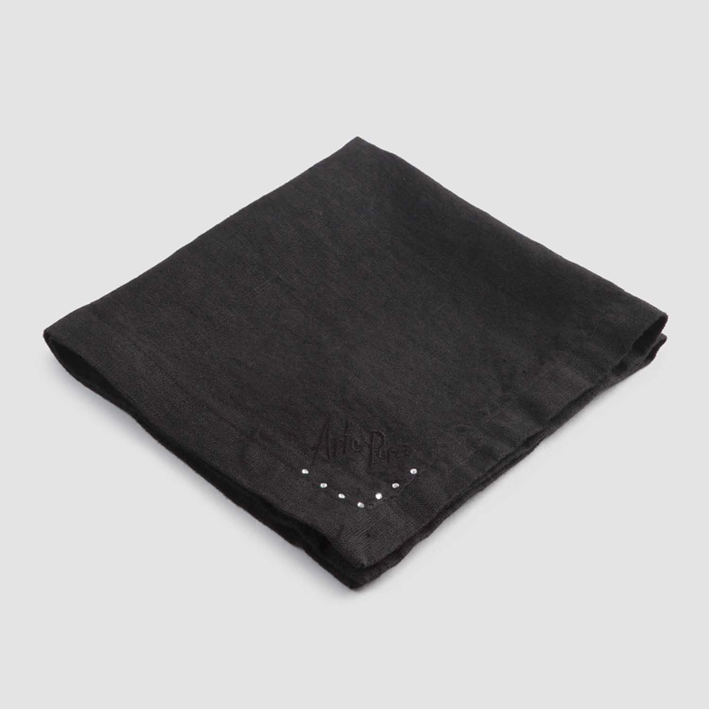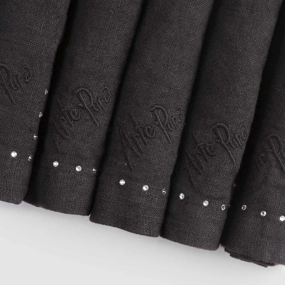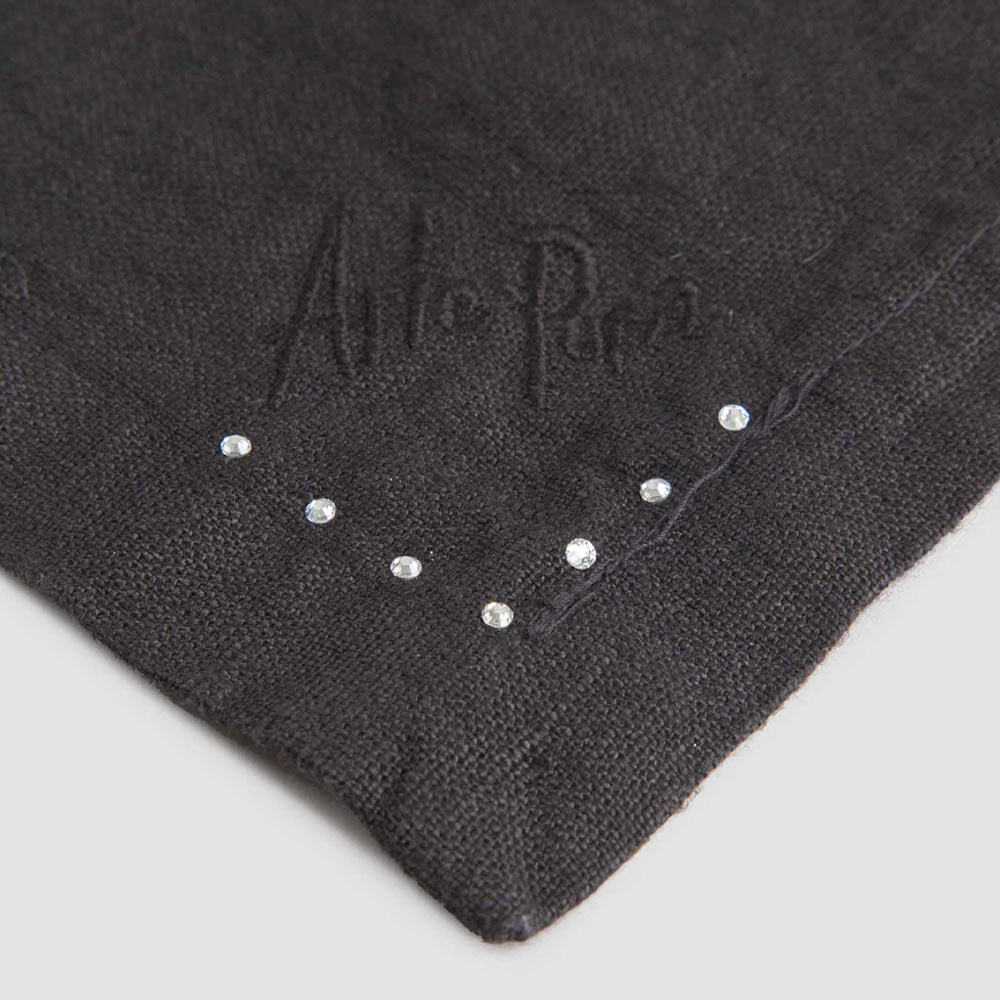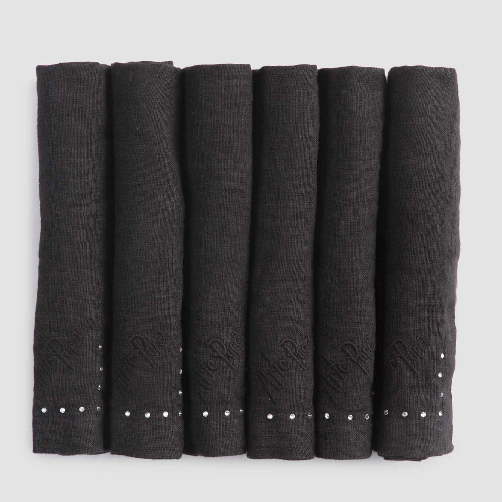 Komplet serwetek z czarnego lnu lub masła z kryształkami, 6 luksusowych sztuk wyprodukowanych we Włoszech.