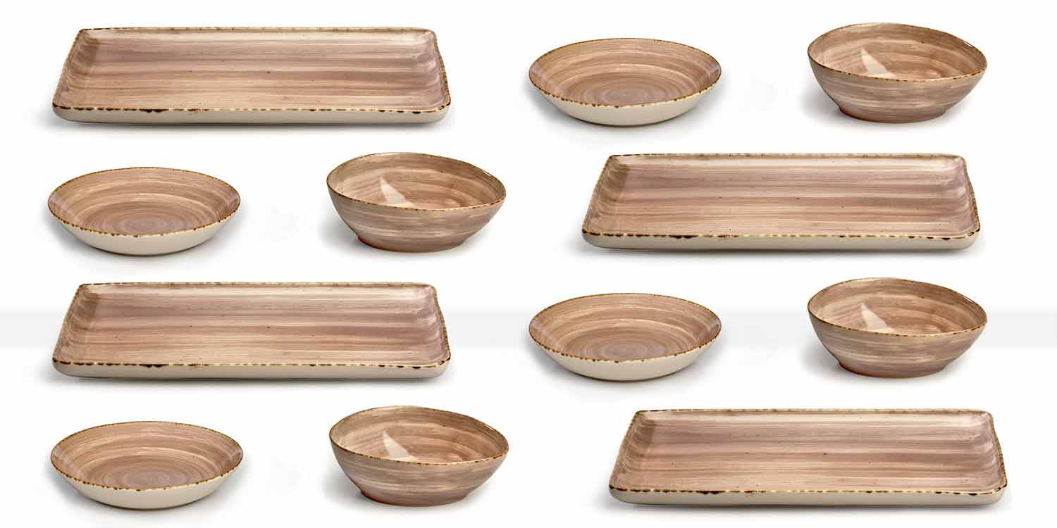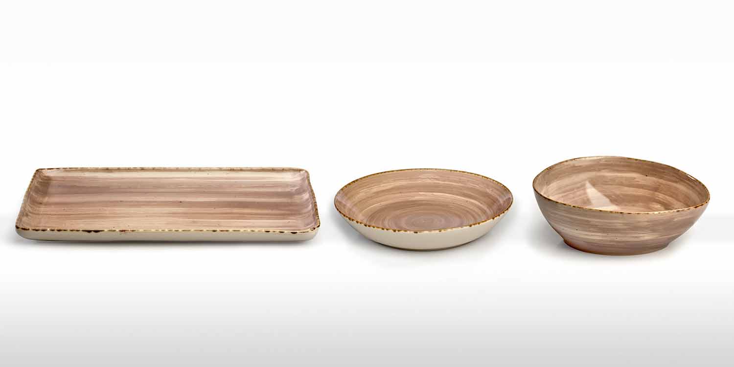 - Oryginalność : nieregularne kształty, dekoracje z nieprecyzyjnymi pociągnięciami pędzla oraz efekt cętkowany wykończony i pomalowany ręcznie oraz postarzany brzeg podkreślają rustykalny i ziemisty styl kolekcji. Każda różnica między jednym dziełem a drugim powinna być traktowana jako dodatkowa cecha wartości i osobowości, dzięki czemu każdy kawałek jest wyjątkowy.