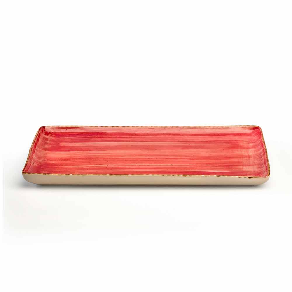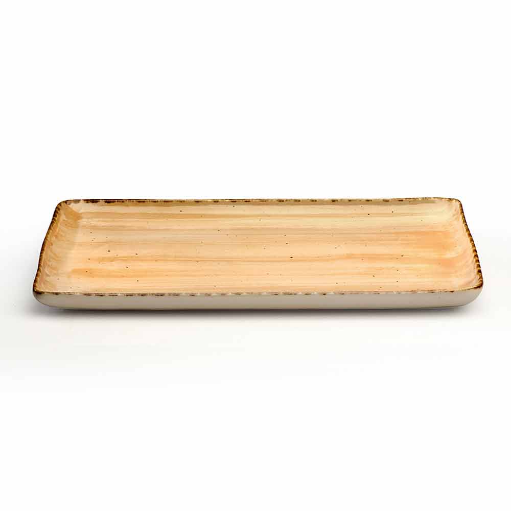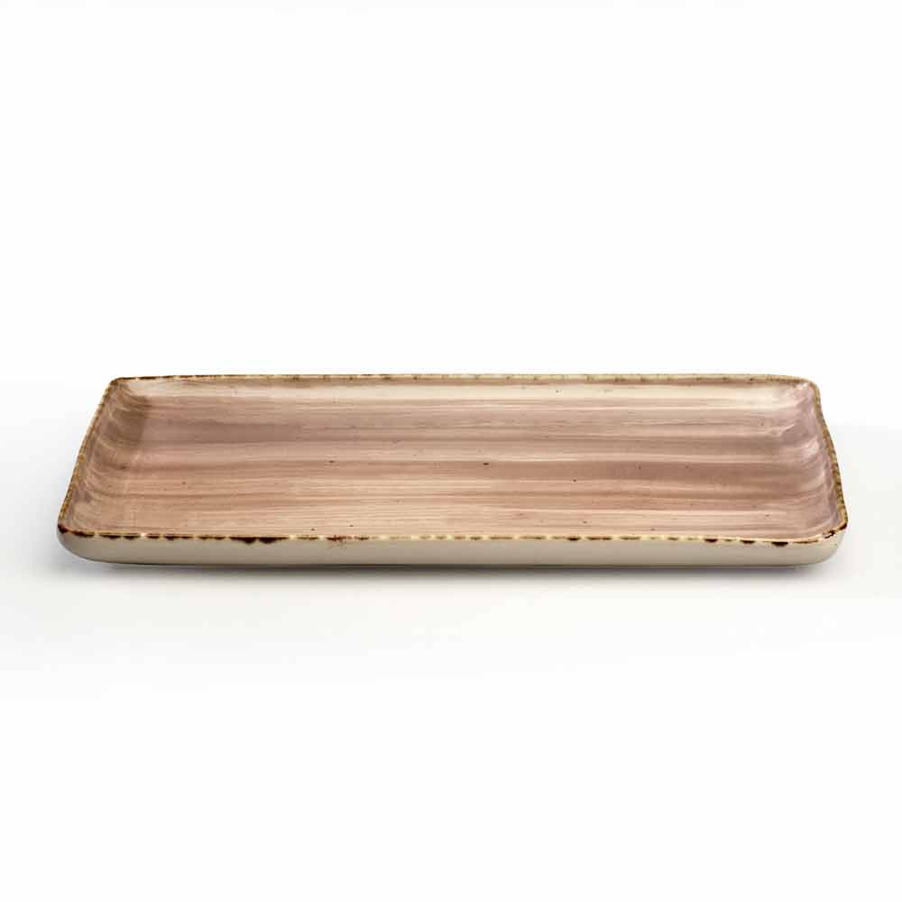 - n.4 Prostokątny talerz 35 x 23 cm odpowiedni na przekąski, dania z grilla, wybór mięs lub serów, tryptyki dań głównych, danie główne z przystawką.