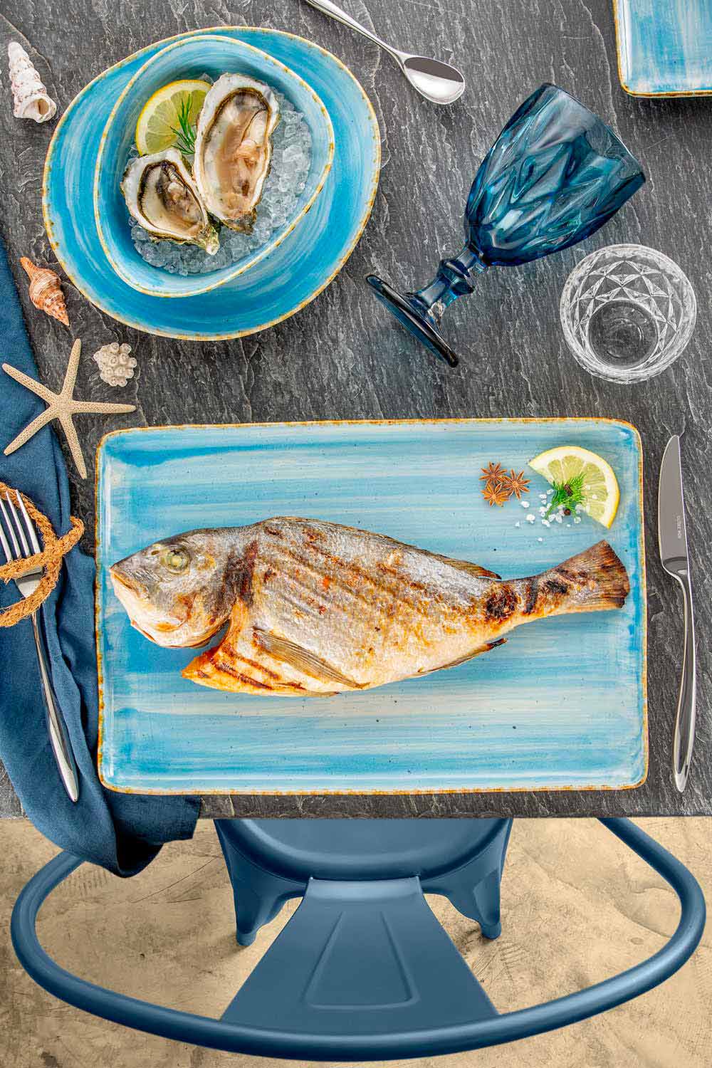 - anyżowy niebieski : kolor oceanu i morska bryza, która miesza się z ogromem nieba, dla mise en place, które chce zaskoczyć i podkreślić smaczne pomysły w kuchni.