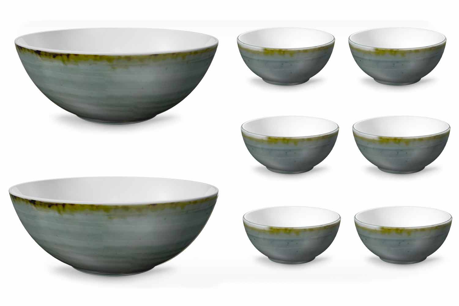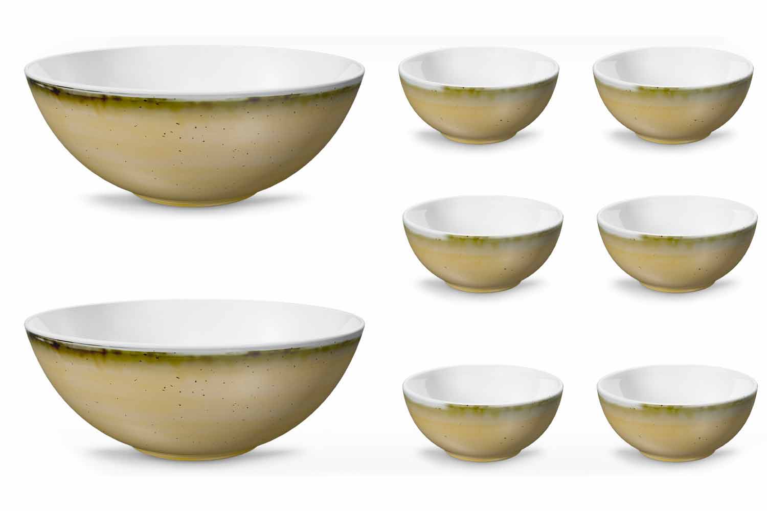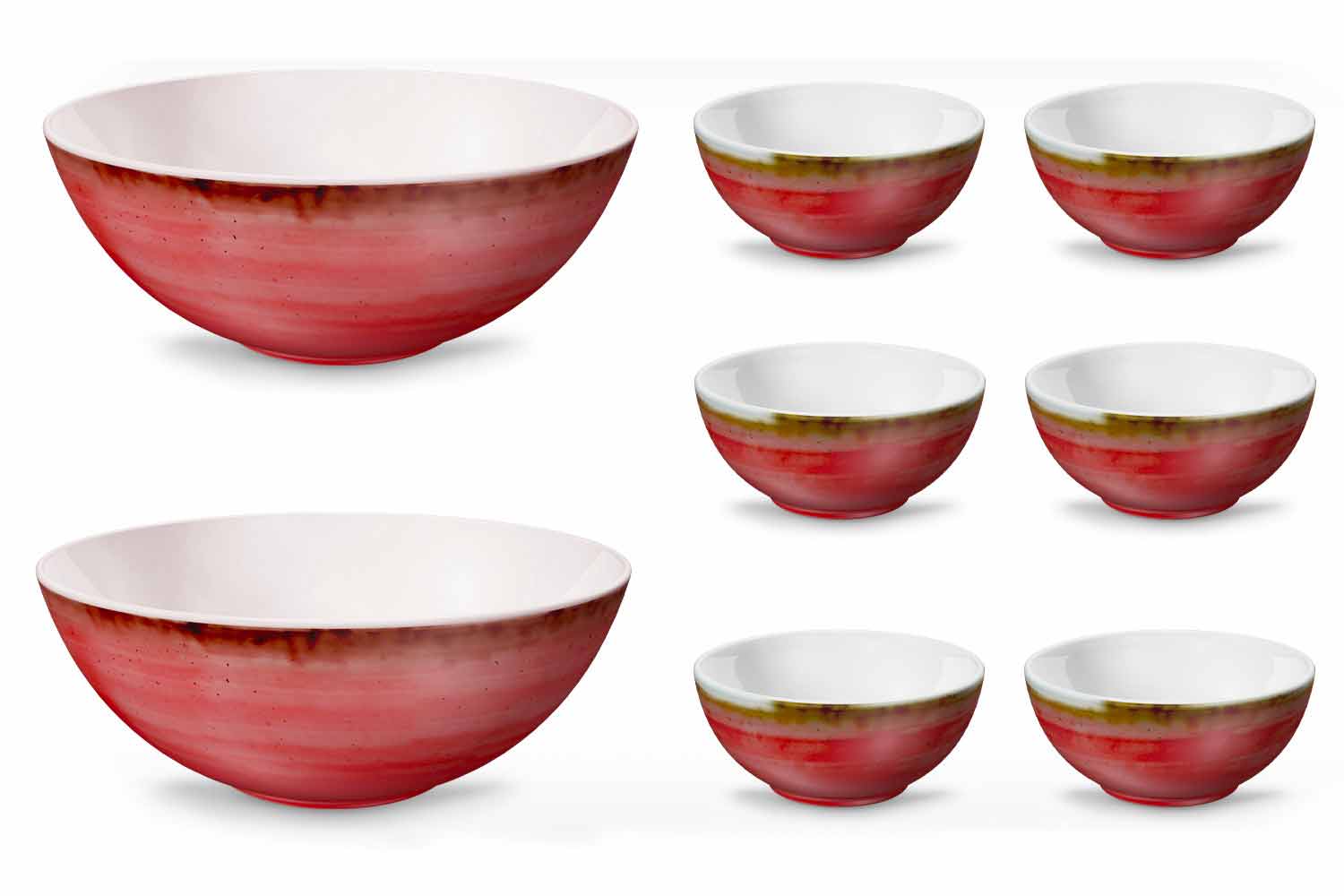Rustykalna miska do lodów lub sałatek owocowych w nowoczesnym stylu, z kolorowej porcelany, 8 sztuk.
