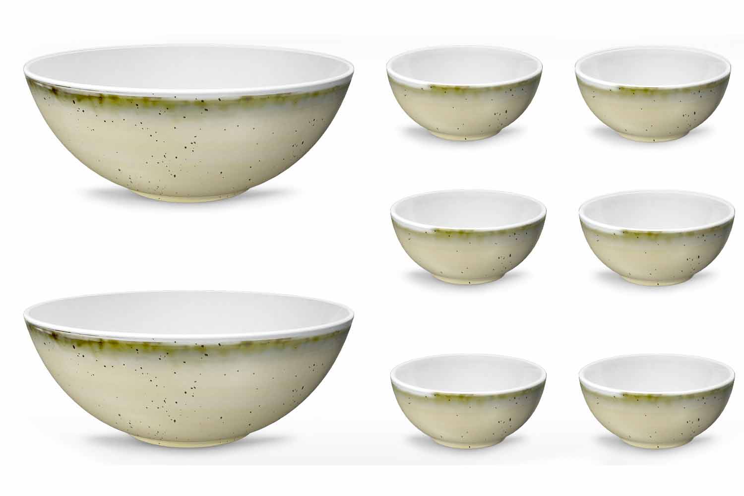 Usługa składa się z: - 6 misek 9 x wys. 4 cm