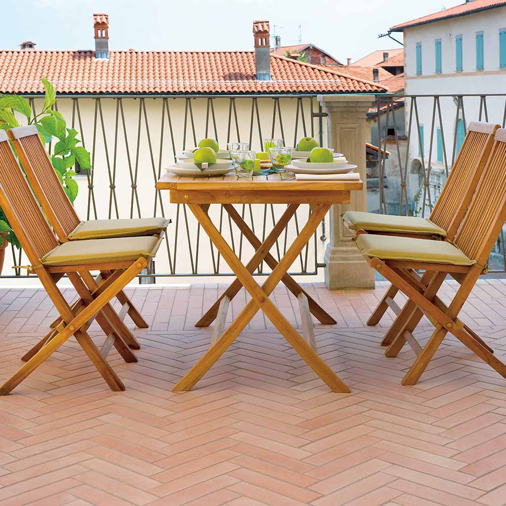 Teak jest klasyfikowany jako najcenniejsze drewno dostępne do produkcji mebli ogrodowych. Jest niezwykle trwały, stabilny, odporny na czynniki atmosferyczne, grzyby, ataki pasożytów i owadów. Zawiera dużą ilość naturalnych olejków, które czynią go odpornym i ograniczają wchłanianie wilgoci. Z biegiem czasu meble z drewna tekowego wystawione na działanie słońca, deszczu, wilgoci itp. zazwyczaj przybierają srebrzystoszary kolor: jest to spowodowane procesem utleniania powierzchni, który w naturalny sposób chroni drewno. Proces ten ma charakter czysto estetyczny i nie niszczy struktury ani jakości drewna. Pojawianie się oleju na powierzchni mebli z drewna tekowego jest procesem naturalnym: olej może wyciekać w ciągu pierwszych miesięcy, mniej lub bardziej regularnie, w zależności od środowiska, w którym meble są umieszczone. Naturalne oleje znajdujące się w drewnie tekowym sprawiają, że jest to najlepsze drewno do mebli ogrodowych.