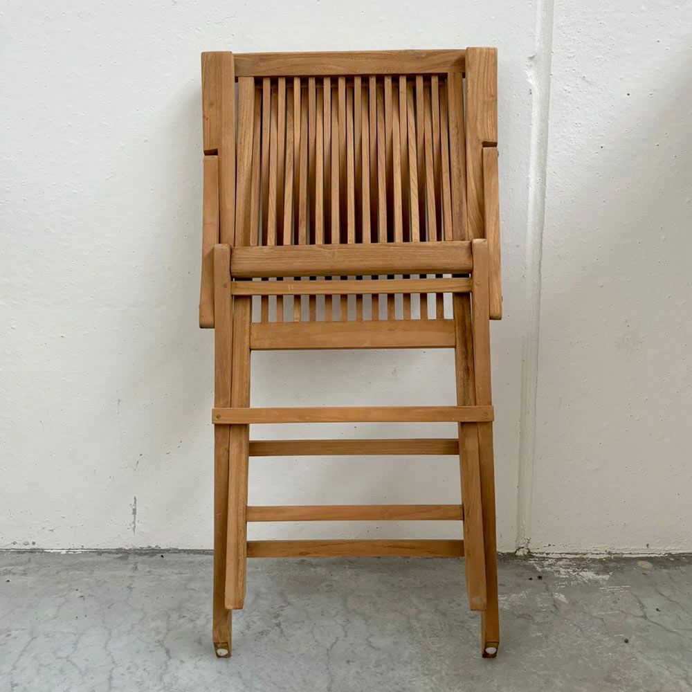 Składane krzesło ogrodowe z drewna tekowego z podłokietnikami.