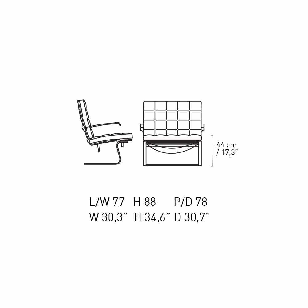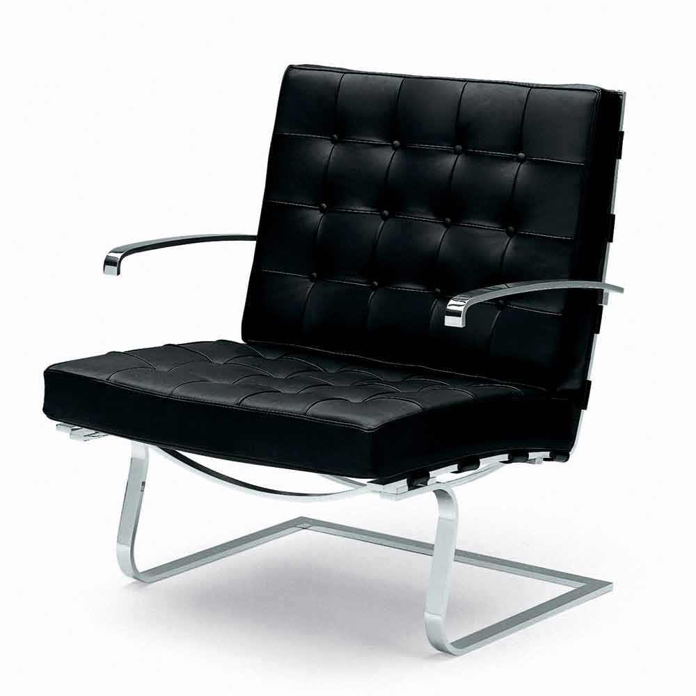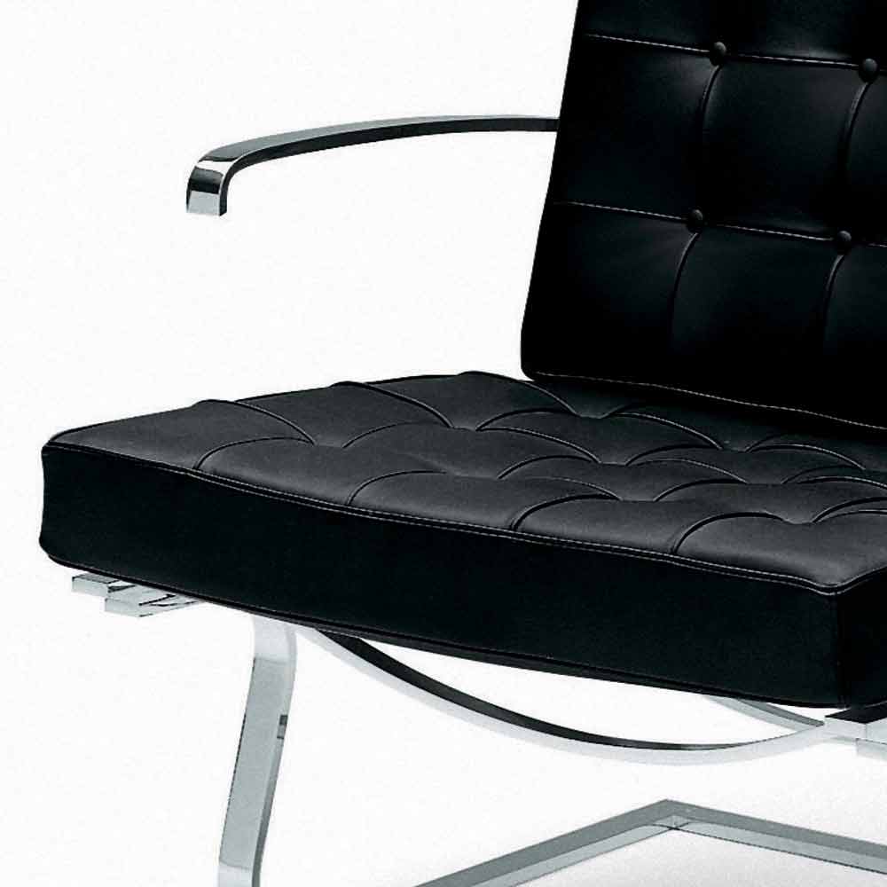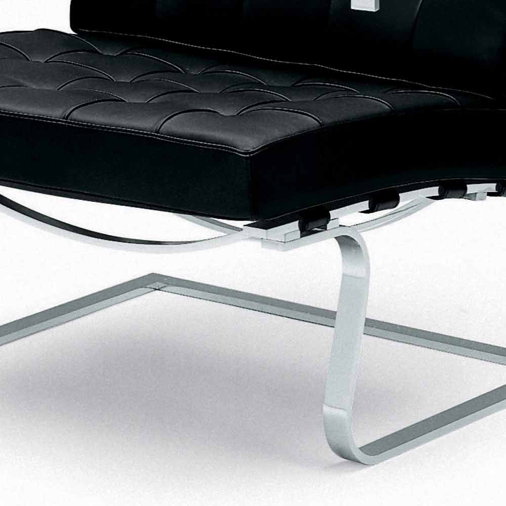 chromowaną stalową ramą , poduszkami z pianki poliuretanowej i podszewką z włókna poliestrowego, pasami podtrzymującymi ze skóry i zewnętrzną powłoką ze skóry, w całości