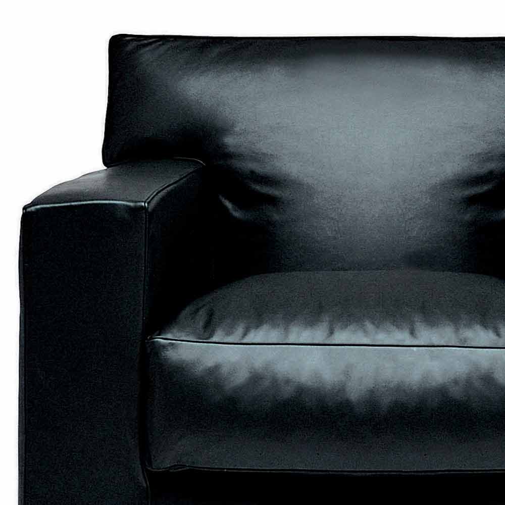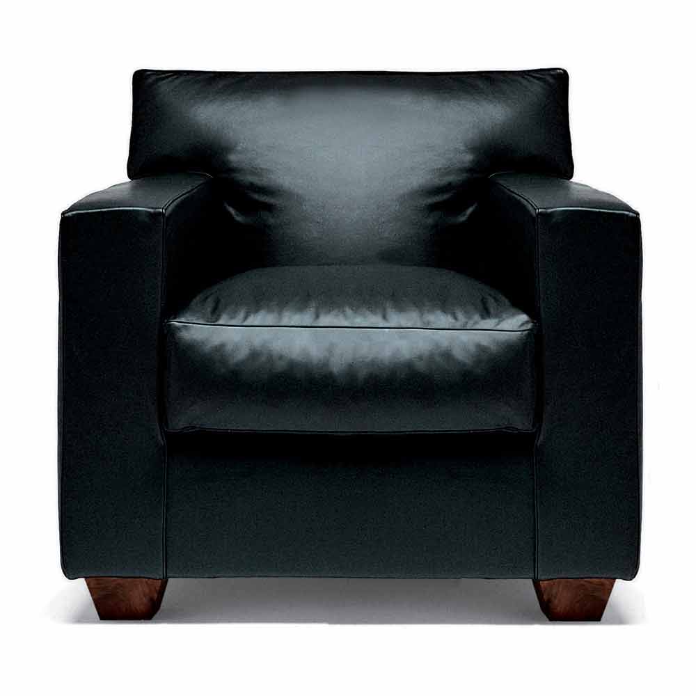 Fotel do salonu tapicerowany skórą z drewnianymi nóżkami Made in Italy.