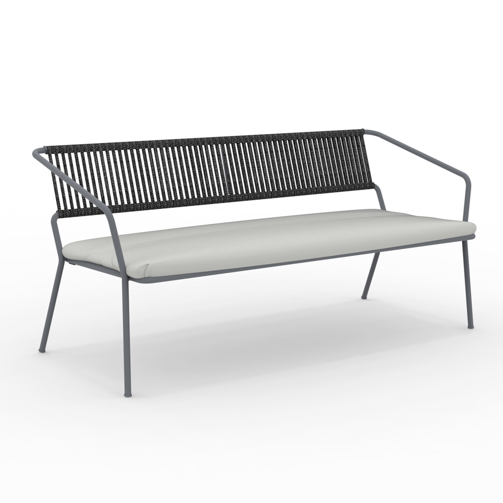 Dwuosobowa sofa ogrodowa z ramą z ocynkowanego żelaza, malowaną proszkowo oraz siedziskiem z liny i tkaniny Wyprodukowano we Włoszech