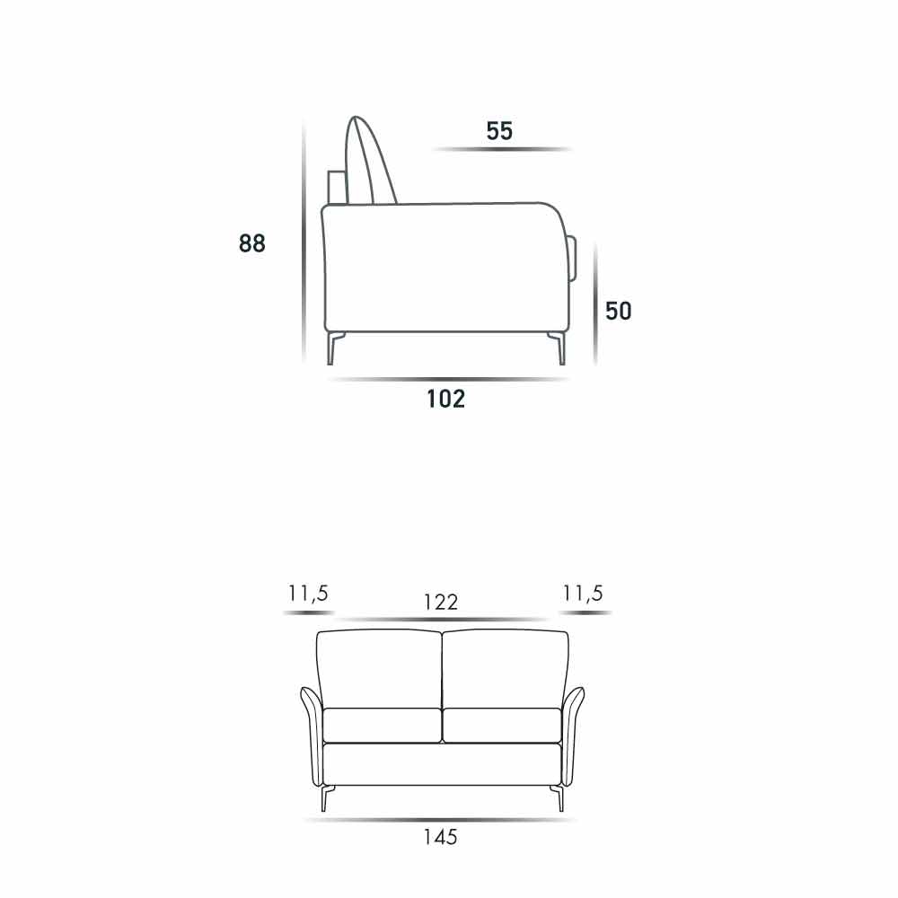 Nowoczesna sofa dwuosobowa L.145 cm ekoskóra / tkanina Erica, wyprodukowana we Włoszech