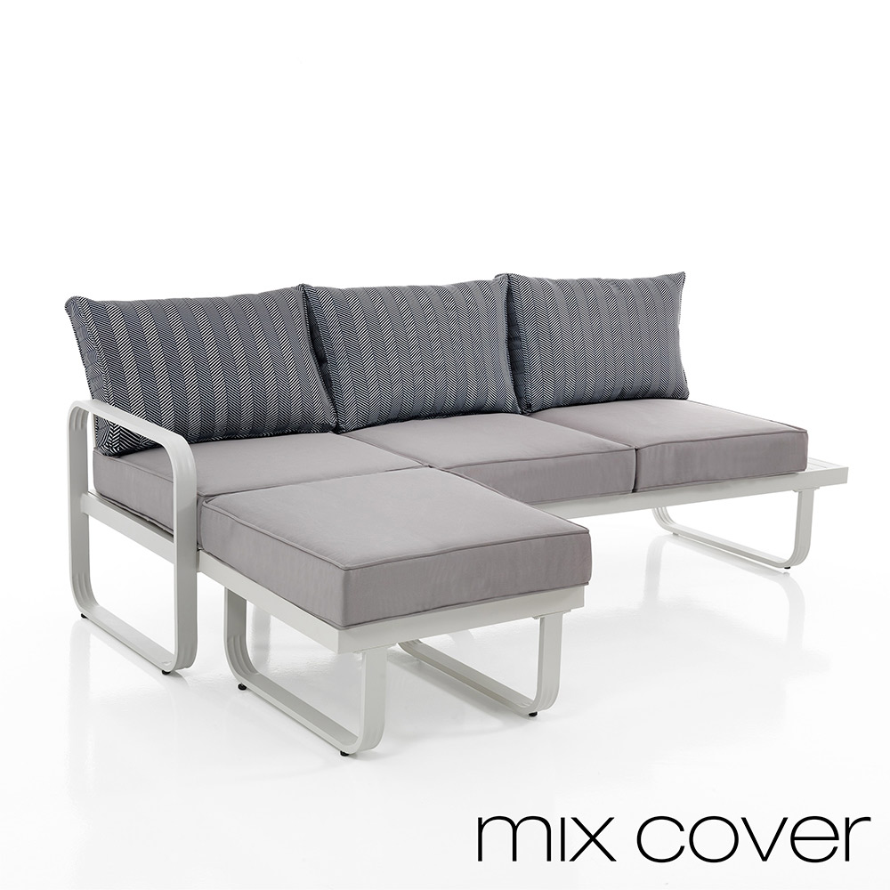 Ta sofa z pufą do ogrodu reprezentuje szczyt funkcjonalnej elegancji . Jego nowoczesne linie, wsparte aluminiową konstrukcją, emanują współczesnym i wyrafinowanym urokiem. Modułowość pufy idealnie komponuje się z sofą, dając możliwość powiększenia przestrzeni do siedzenia lub wykorzystania jej jako podnóżka, co zapewnia niezrównaną wszechstronność . Wysokiej jakości materiały zapewniają trwałość i łatwość konserwacji , niezbędne przy użytkowaniu na zewnątrz. Ten zestaw to coś więcej niż tylko meble; to wyraz komfortu i stylu , który zachęca do wspólnych chwil, relaksu po długim dniu lub do zabawiania gości w atmosferze gościnności i dyskretnego luksusu .