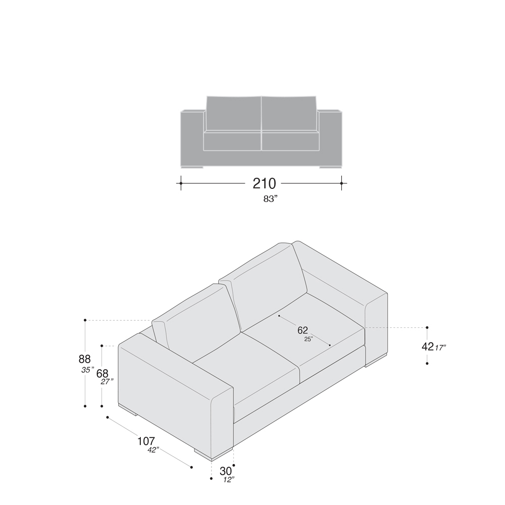 Dostępne rozmiary:- długość: 210 x głębokość: 107 x wysokość: 88 cm