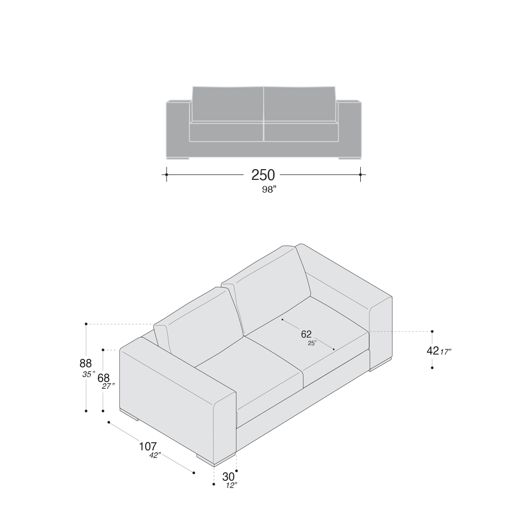 - długość: 250 x głębokość: 107 x wysokość: 88 cm