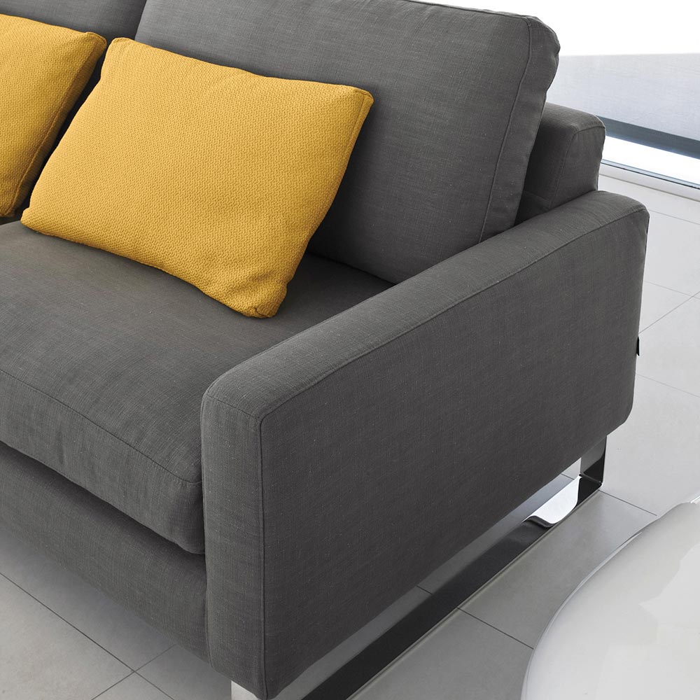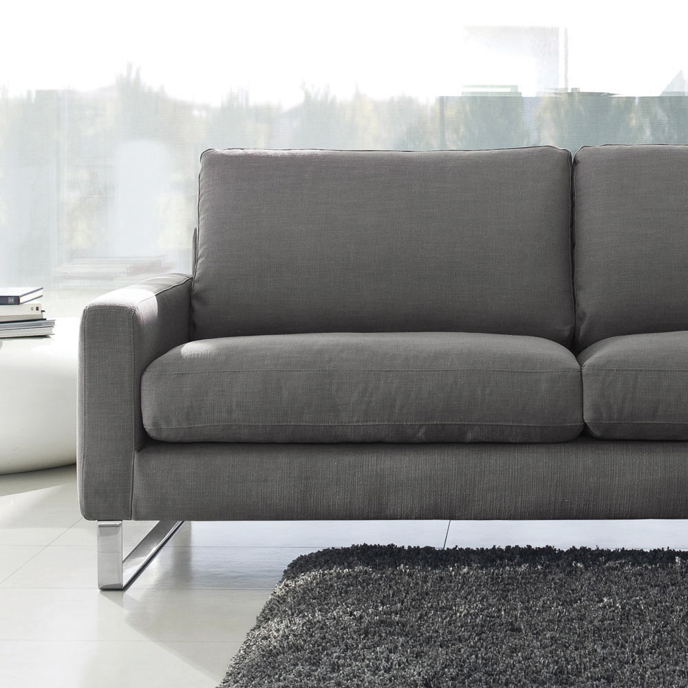 z chromowanych metalowych sań. Sofa uosabia istotę minimalizmu przekształconego w funkcjonalność. Dzięki swojemu wyjątkowemu wzornictwu oferuje wygodę i elegancję, obiecując, że zawsze będzie nadążać za czasami pod względem estetyki i wygody. Szeroka gama tapicerek i kolorów sprawia, że jest to wszechstronny mebel do każdego otoczenia.