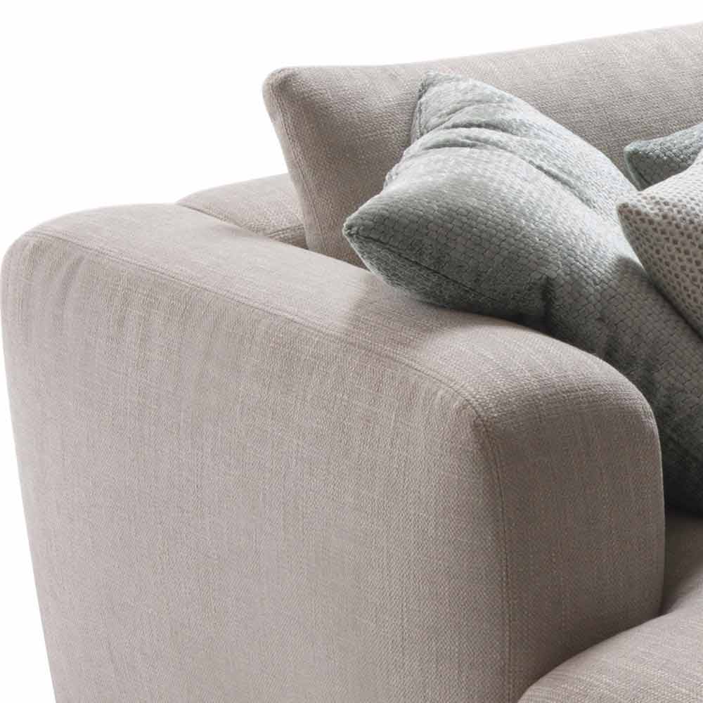 Kształty poduszek siedziska, obfite i obfite, oferują nieoczekiwany komfort; zamiast tego kompaktowe i proste kształty sofy pozwalają na tworzenie wielu różnych kompozycji.