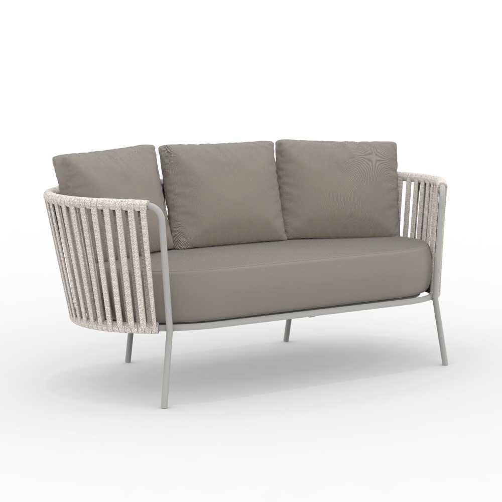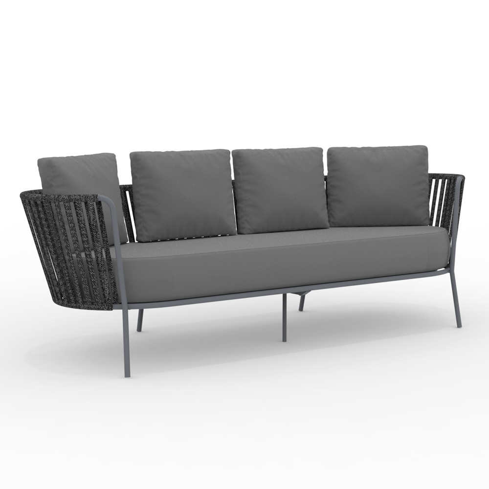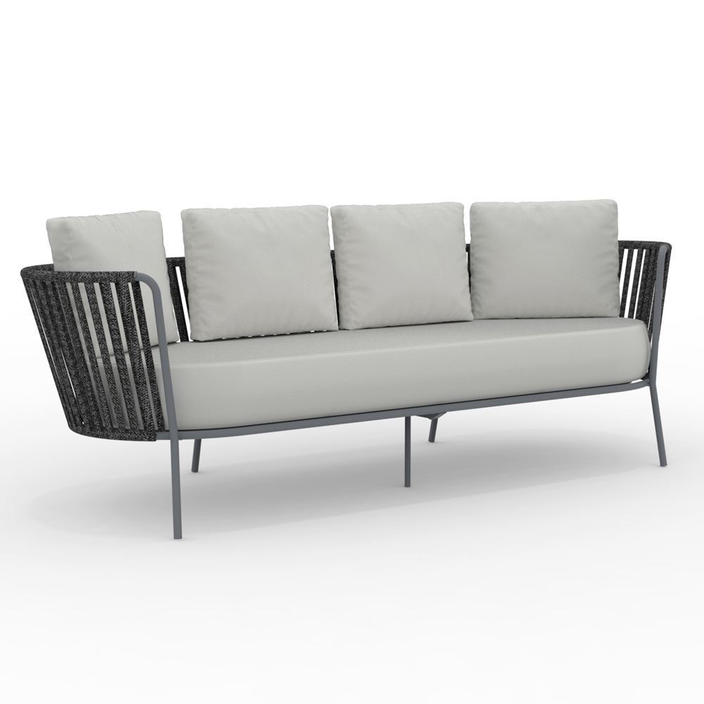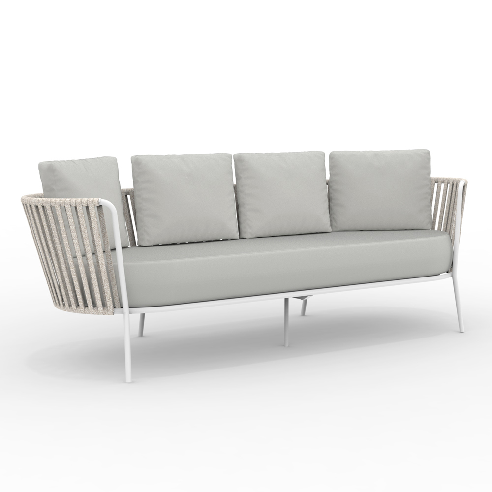 Ta piękna sofa ogrodowa łączy w sobie nowoczesny i wyrafinowany design z materiałami najwyższej jakości, dzięki czemu idealnie nadaje się do stworzenia przyjaznego i wyrafinowanego otoczenia w ogrodzie, na tarasie lub werandzie.