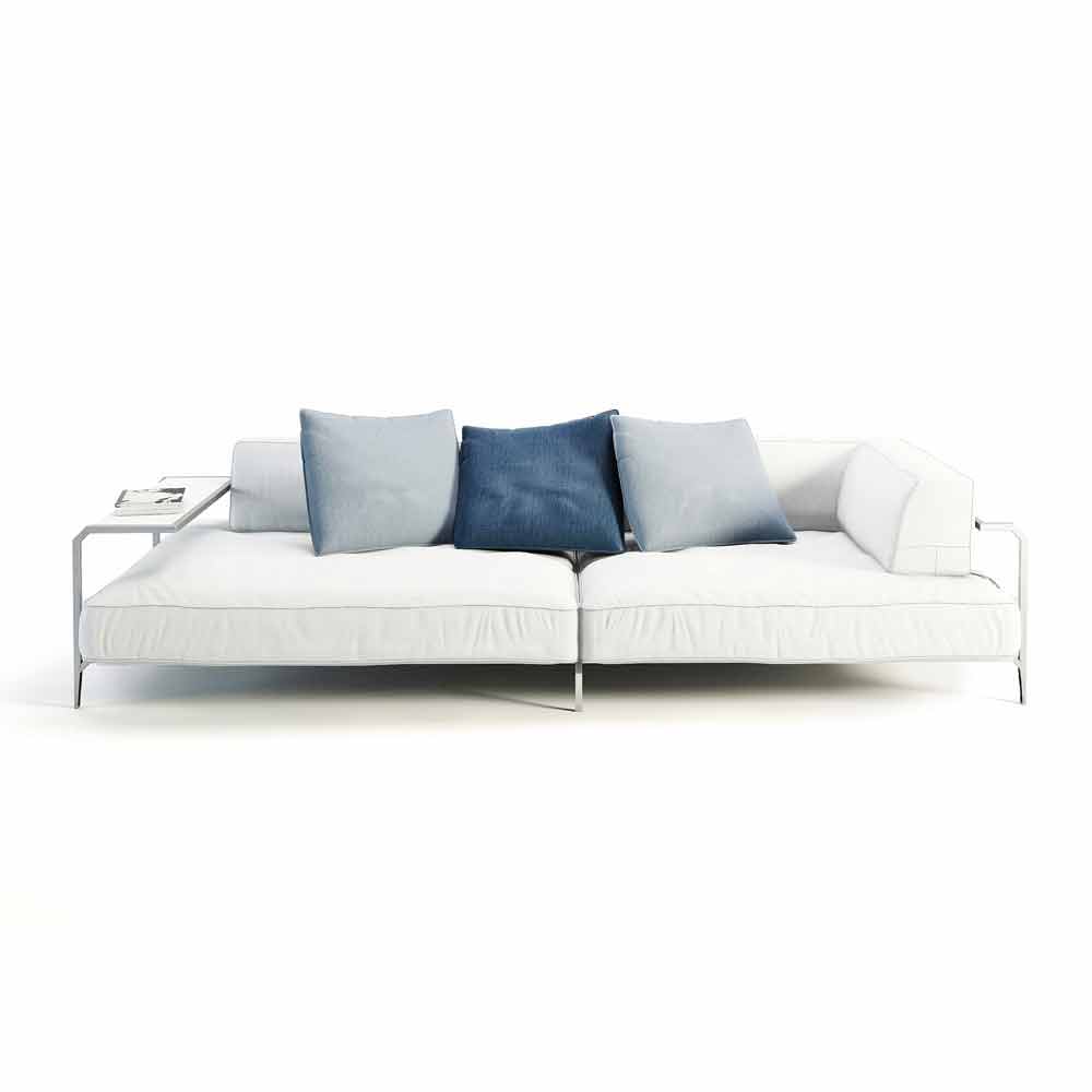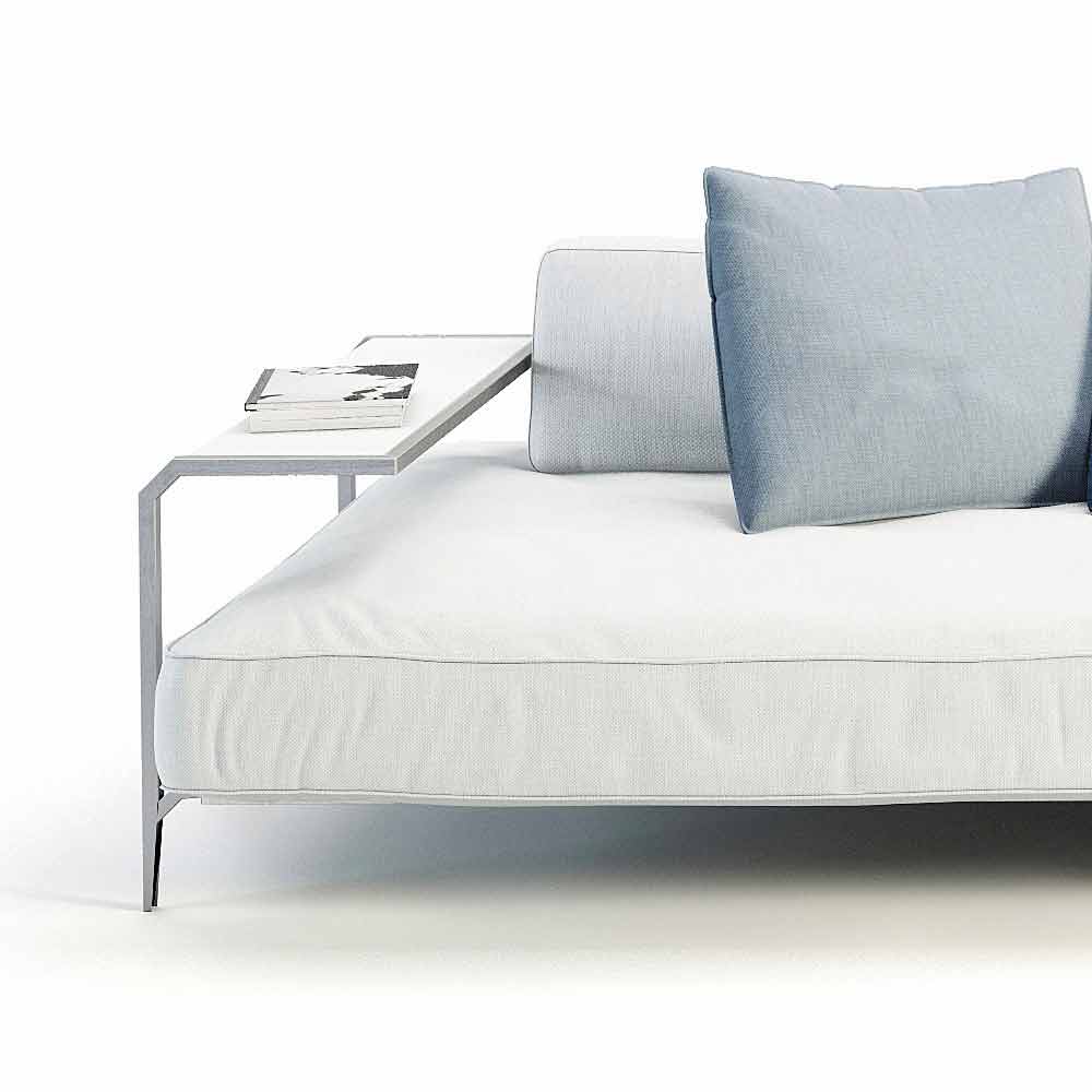 Sofa zewnętrzna ze stolikiem kawowym, wykonana ze stali i białej tkaniny, nowoczesny design wyprodukowany we Włoszech.