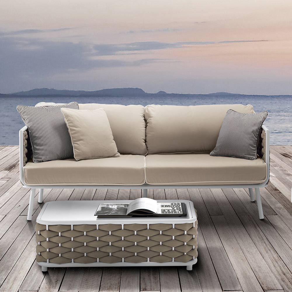 Struktura tej sofy jest łatwa w obsłudze i wytrzymała, ale jednocześnie zachowuje czysty design. Jej nowoczesny styl nadaje jej silny charakter, dzięki czemu idealnie nadaje się do wyposażenia przestrzeni zewnętrznych zarówno w środowiskach prywatnych, jak i kontraktowych.