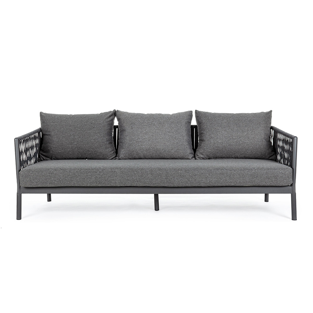 Sofa zewnętrzna ze zdejmowanymi poduszkami i aluminiową konstrukcją, wysoka jakość.