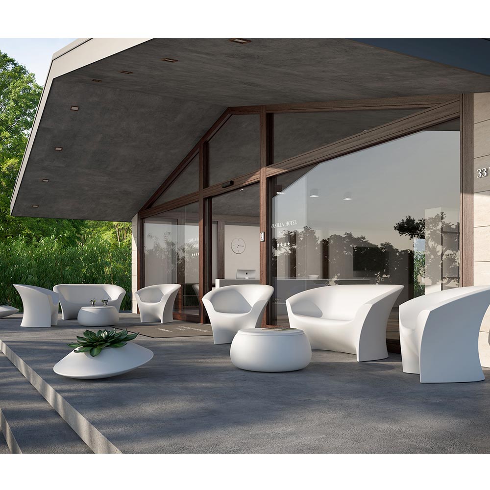 sofa zewnętrzna charakteryzuje się lekkimi i delikatnymi liniami, ale jednocześnie dzięki dobranemu materiałowi zapewnia doskonałą stabilność, co zapewnia solidny i wysokiej jakości produkt końcowy. Produkt w całości wyprodukowany we Włoszech, wykonany z polietylenu dostępnego w wersji nieprzezroczystej charakteryzującej się doskonałą odpornością na słońce, wstrząsy i ciepło lub w wersji odpornej i jasnej lakierowanej, która pozwala tworzyć grę światła i refleksów, które stają się bohaterami wewnątrz. środowiska. Idealny do dekorowania każdego środowiska zewnętrznego ze smakiem i wyrafinowaniem, bez zaniedbania funkcjonalnego i praktycznego aspektu.