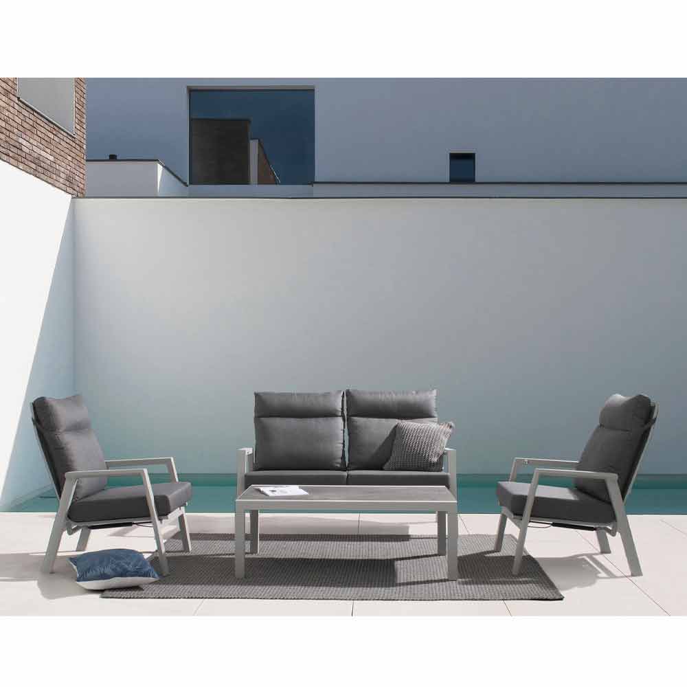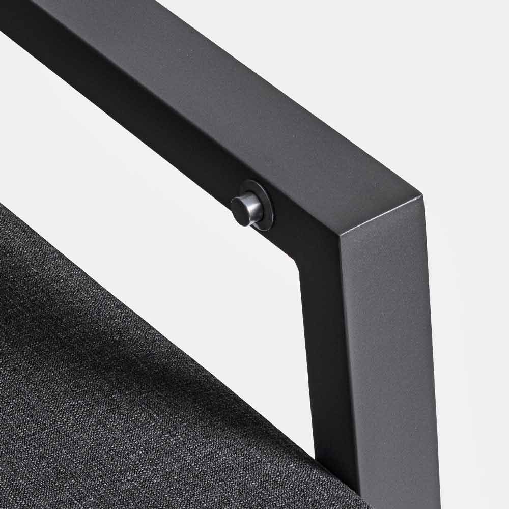 Konstrukcja aluminiowa malowana proszkowo (poliester). Odchylane oparcie w dowolnej pozycji i siedzisko z tkaniny 1x1. Wyjmowane poduszki z tkaniny olefinowej (100% polipropylen).