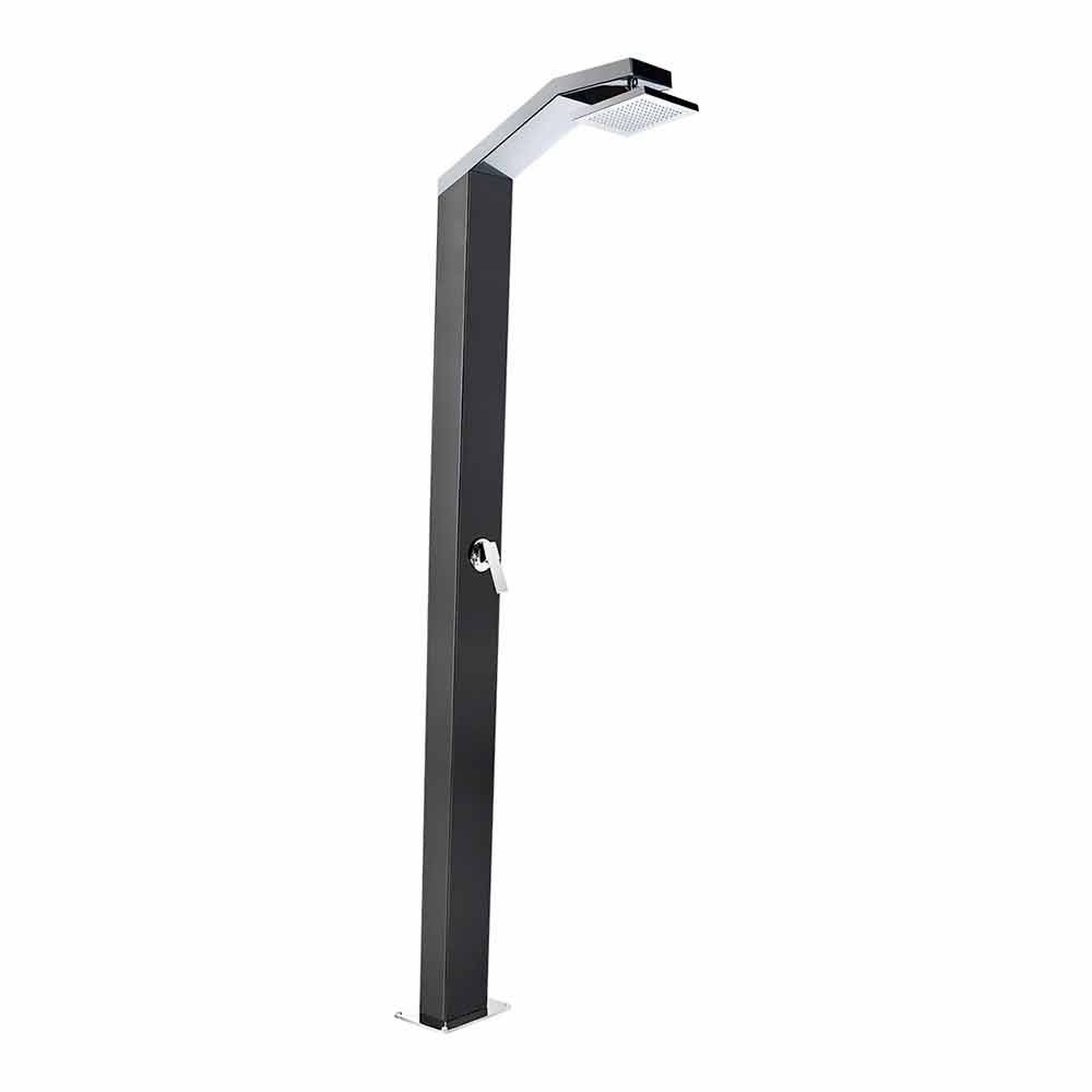 Prysznic ogrodowy zasilany energią słoneczną, wykonany ze stali nierdzewnej malowanej na czarno, wyprodukowany we Włoszech.
