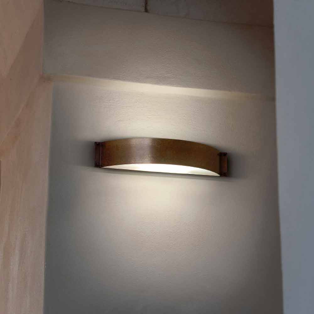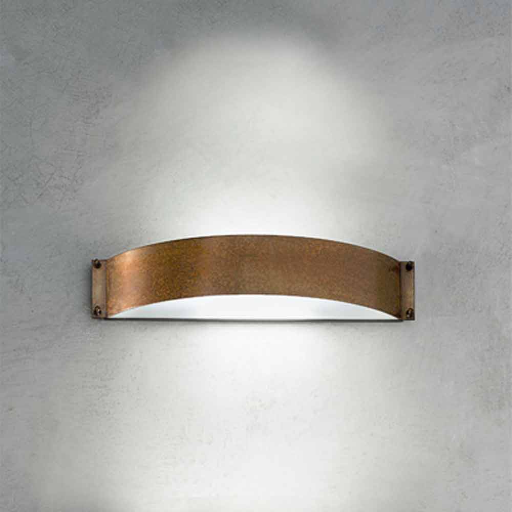Designerski kinkiet Fashion marki Aldo Bernardi, wykonany z postarzanej miedzi i metakrylanu.
