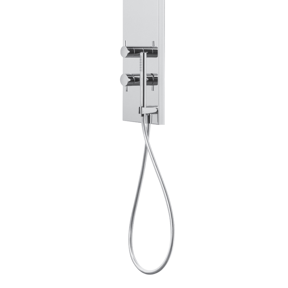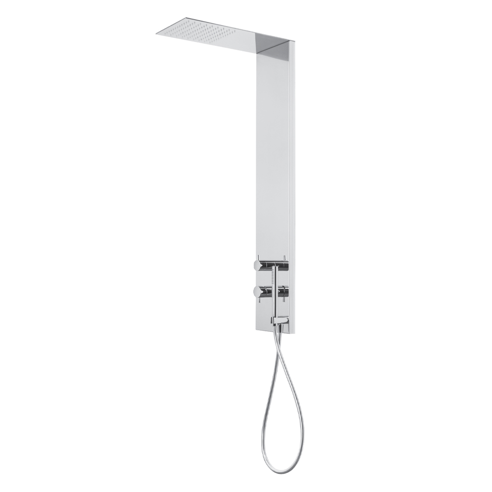 Stalowa kolumna prysznicowa z podwójnym strumieniem, luksusowy design Made in Italy.