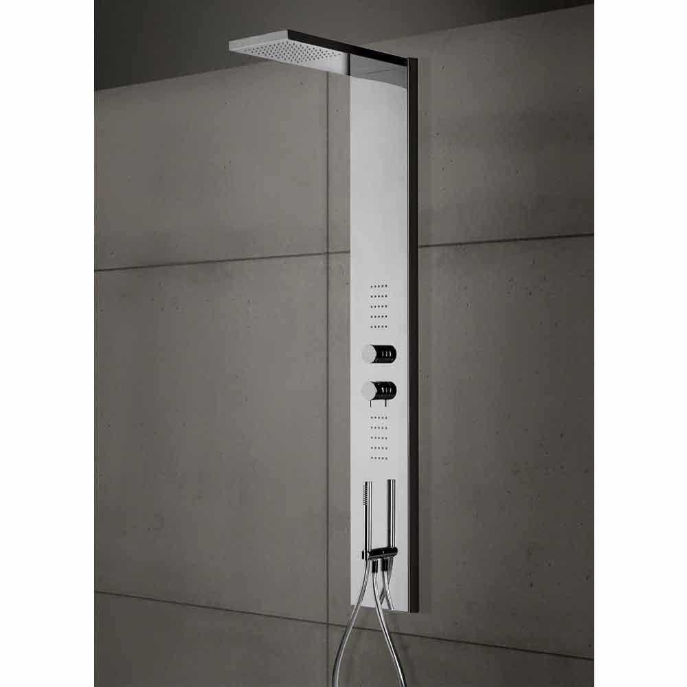 Kolumna prysznicowa z panelem stalowym z trzema wylotami i deszczownicą, produkt wysokiej jakości Made in Italy.