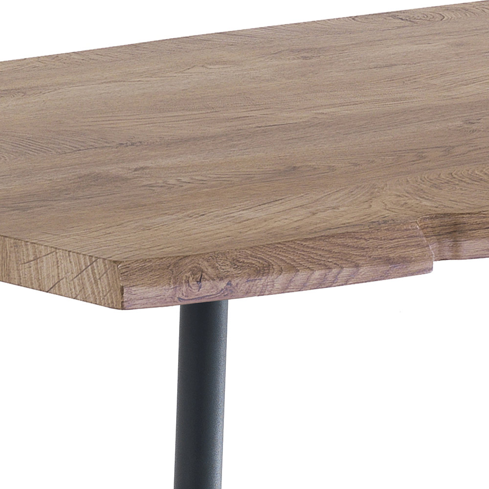 Stół do jadalni w wykończeniu mdf w kolorze dębu z nogami ze stali lakierowanej.