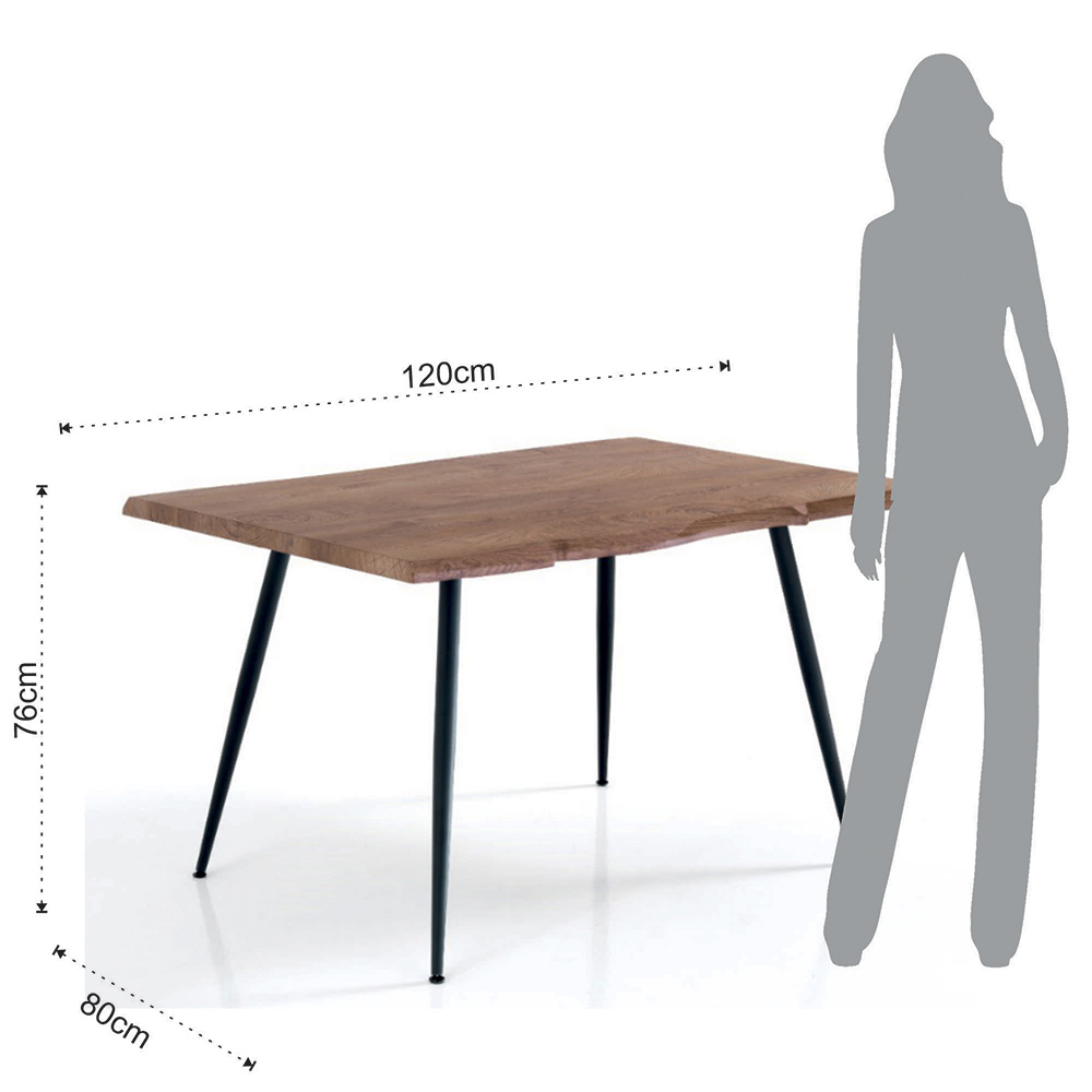 Stół do jadalni z blatem z płyty MDF pokrytym dębową melaminą (grubość 3,3 cm) oraz nogami z regulowaną nóżką ze stali lakierowanej na czarno . Minimalistyczny i nowoczesny design zaprojektowany, aby w istotny sposób wyposażyć każdą przestrzeń życiową, niosąc ze sobą funkcjonalność i elegancję . Połączenie wykończeń i dobranych materiałów nadaje produktowi osobowość i pozwala zapewnić mu solidność, stabilność i doskonałą trwałość . Rezultatem jest zatem awangardowy stół do jadalni, charakteryzujący się wyraźną wszechstronnością zastosowania, zdolny do uzupełnienia osobowością każdej sytuacji domowej lub kontraktowej.