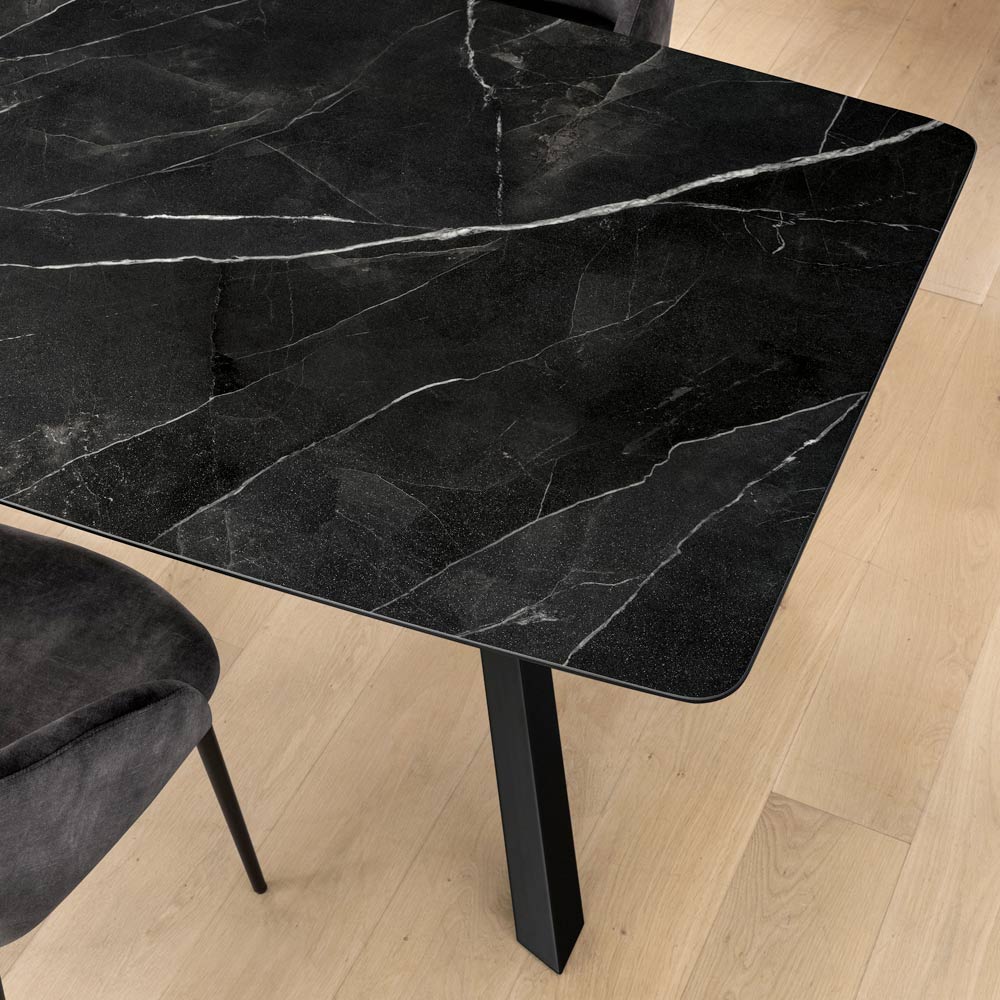 Blat wykonany jest z Laminam , najnowszej generacji ceramicznej powierzchni, która łączy w sobie estetyczną elegancję i techniczne parametry . Jest w rzeczywistości odporny , idealny do codziennego użytku w kuchni, jadalni lub środowiskach profesjonalnych.