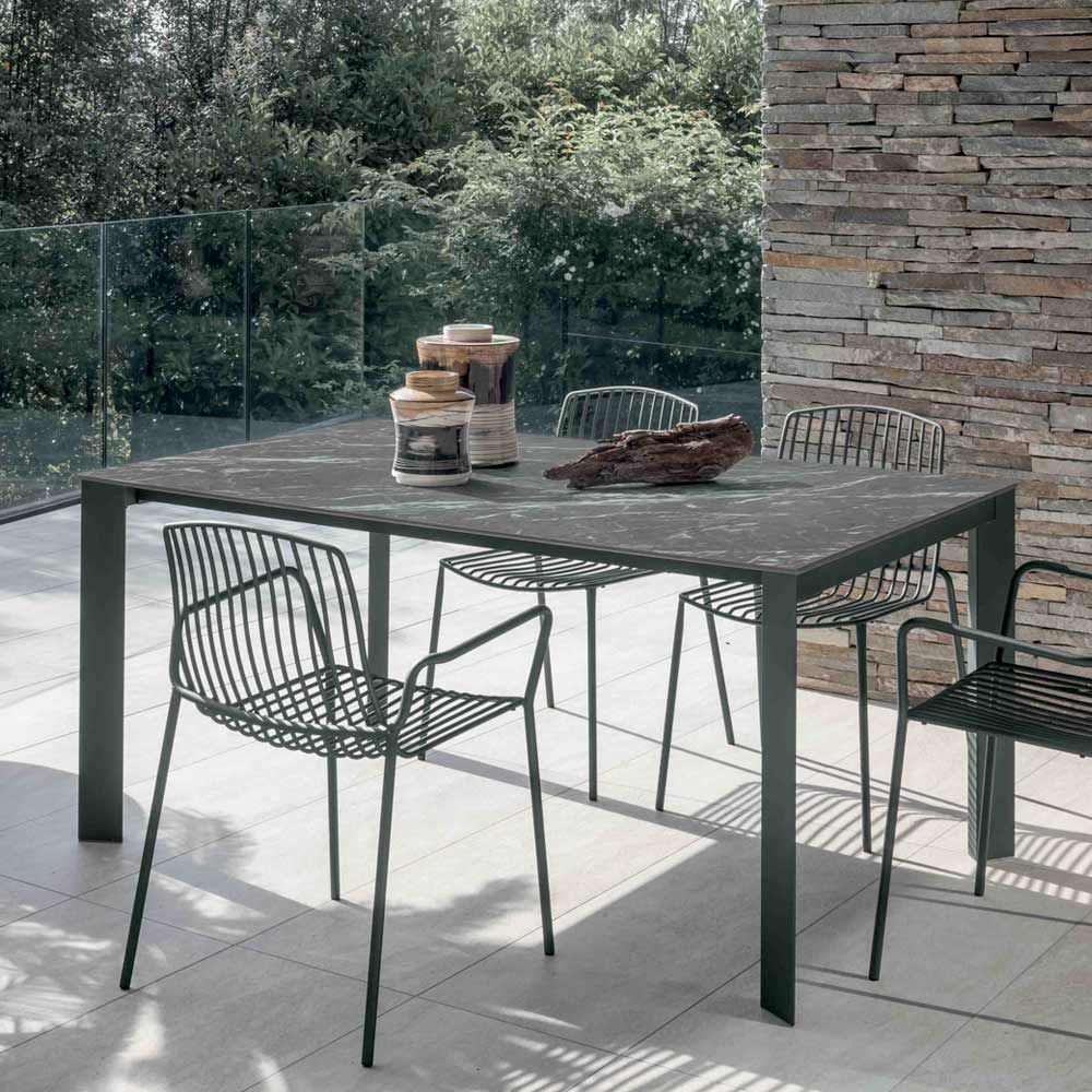 Cienka, ale solidna metalowa rama zapewnia stabilność i trwałość, dzięki czemu idealnie nadaje się do codziennego użytku. Idealny na każdą okazję, od rodzinnych kolacji po spotkania ze znajomymi, ten stół oferuje wystarczające wymiary, aby wygodnie pomieścić wszystkich gości.