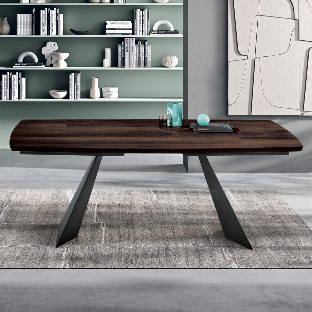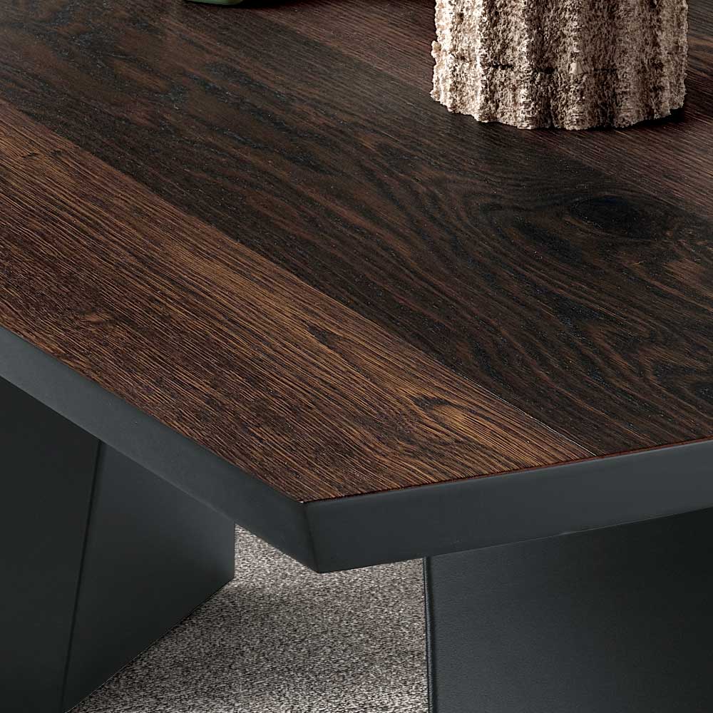 Połączenie metalu i drewna tworzy elegancki i nowoczesny kontrast, dzięki czemu stół pasuje do różnych stylów aranżacji. Blat dostępny jest w wykończeniu z surowego dębu i dębu termowanego , które podkreślają naturalne piękno drewna i z łatwością wpasowują się w nowoczesne wnętrza.