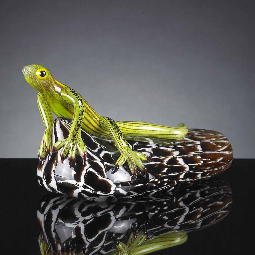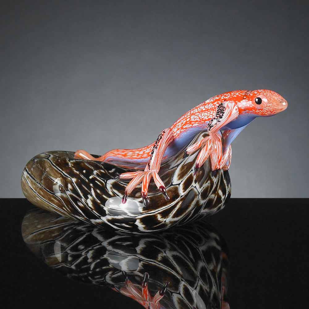 Ozdoba w kształcie jaszczurki na kamieniu z kolorowego szkła Made in Italy, grzywna.
