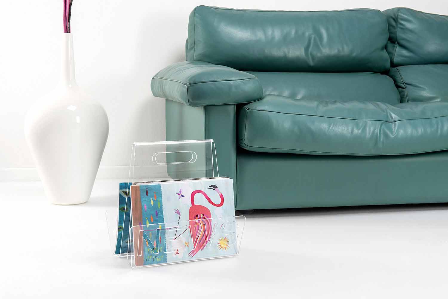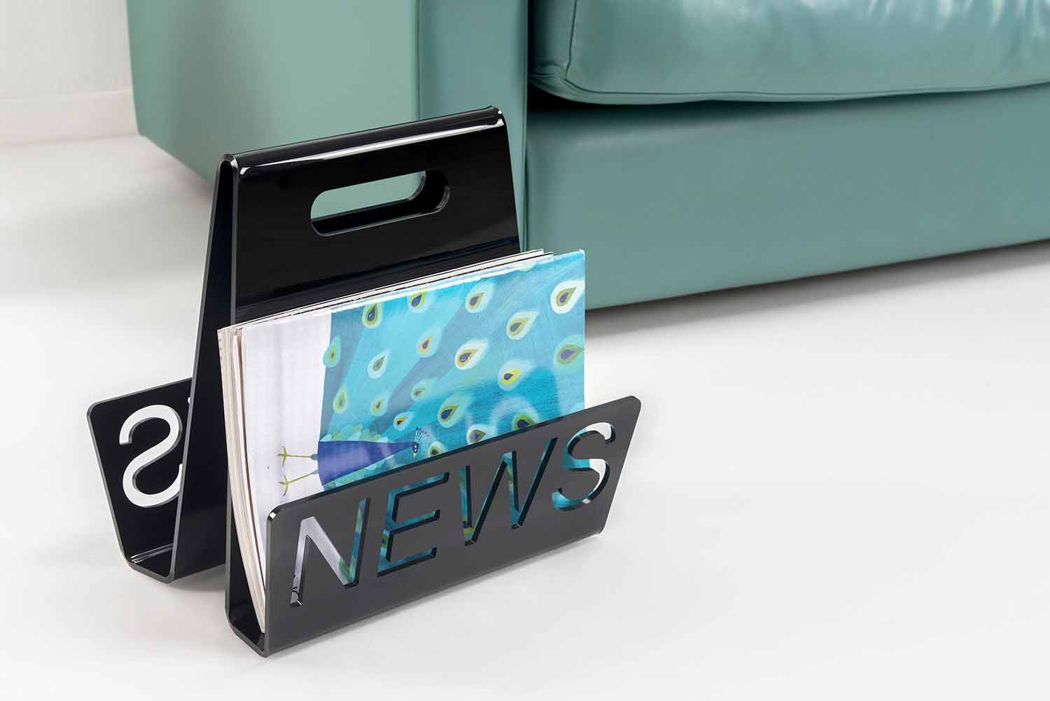 Stojak na czasopisma w czarnej lub przezroczystej pleksi o nowoczesnym designie, wykonany ręcznie we Włoszech.
