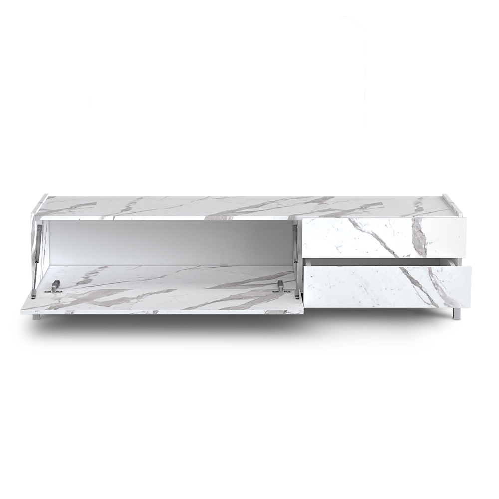 ekologicznych płyt wiórowych o grubości 15/16 mm, całkowicie pokryta melaminą z matowym wykończeniem z białego marmuru Calacatta , z
